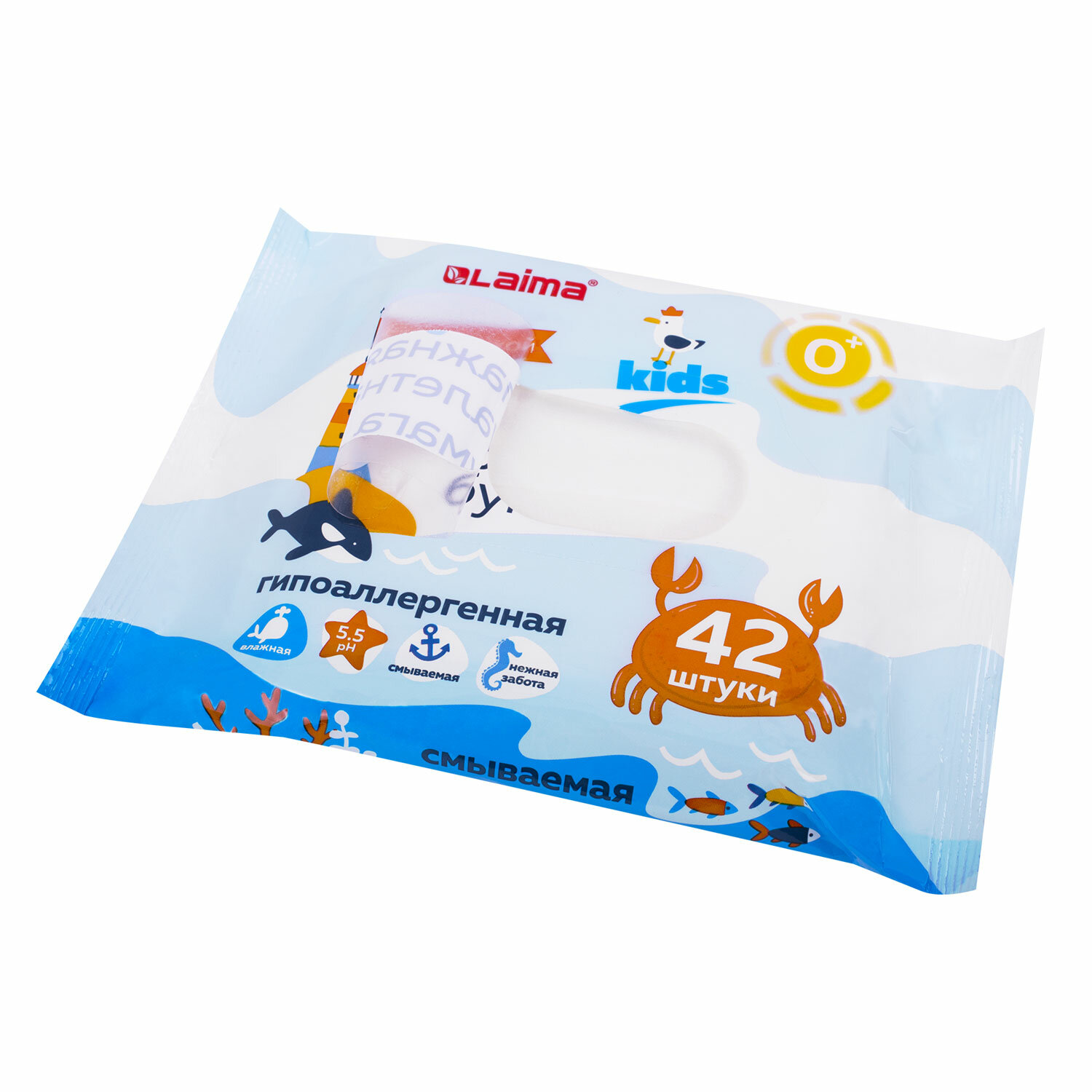 - Бумага туалетная влажная детская 42 шт., БИОРАЗЛАГАЕМАЯ, смываемая, LAIMA Kids, 115223