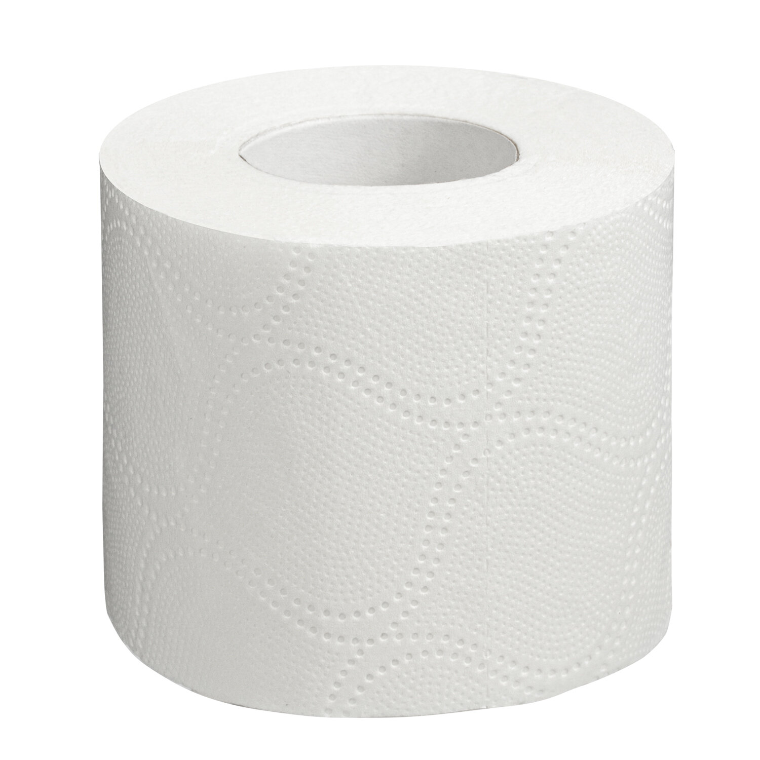 2-слойная туалетная бумага из облагороженной макулатуры обладает нежной текстурой и повышенной мягкостью. Наличие перфорации делает использование туалетной бумаги удобнее, а расход экономичнее. Длина намотки составляет 18,5 м, диаметр рулона – 105 мм. Размер листа – 9,2х12,5 см. Всего 144 листа в одном рулоне. 12 рулонов в спайке. Бумага туалетная бытовая, спайка 12 шт., 2-х слойная, (12х18 м), LAIMA, белая, 128718