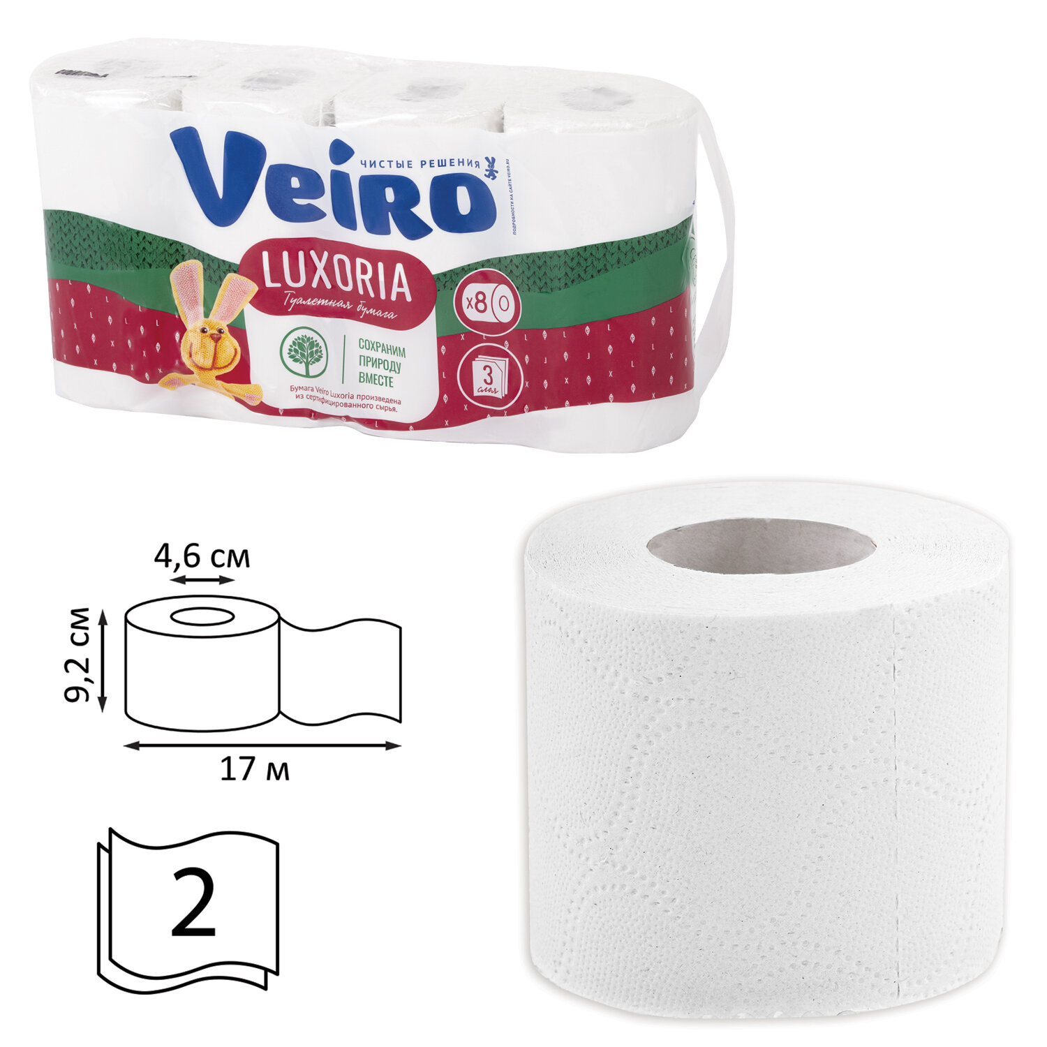 - Бумага туалетная бытовая, спайка 8 шт., 3-х слойная (8х17 м), VEIRO Luxoria, белая, 5с38