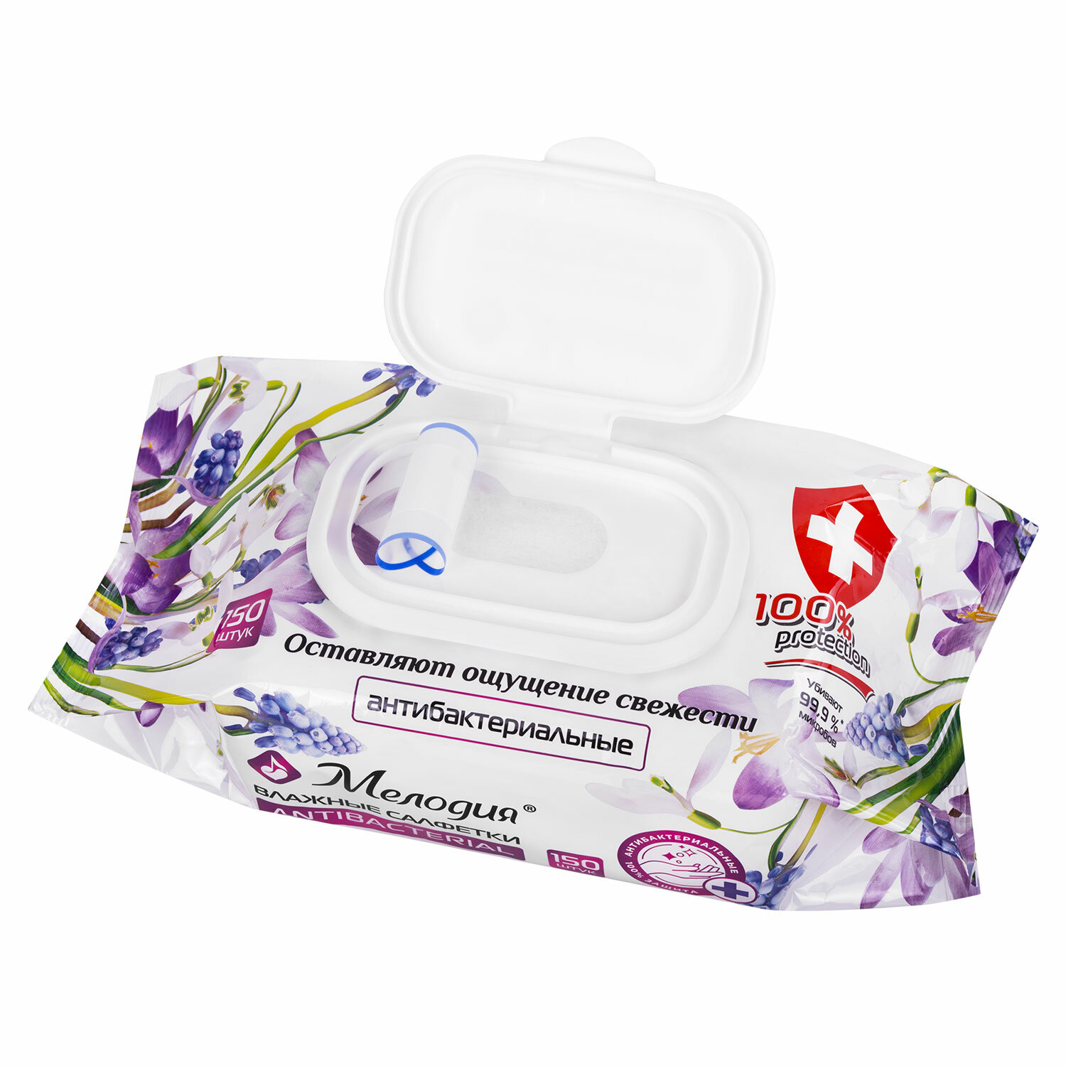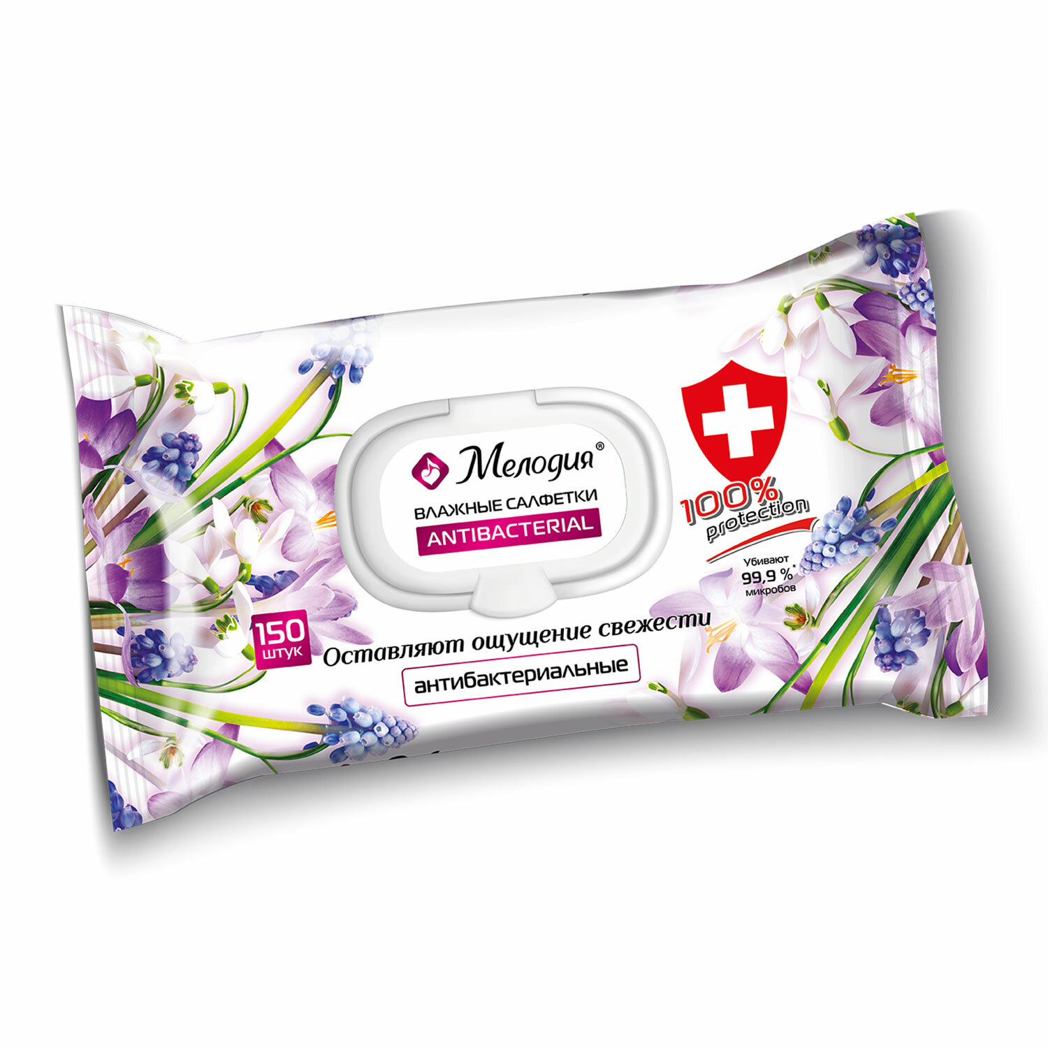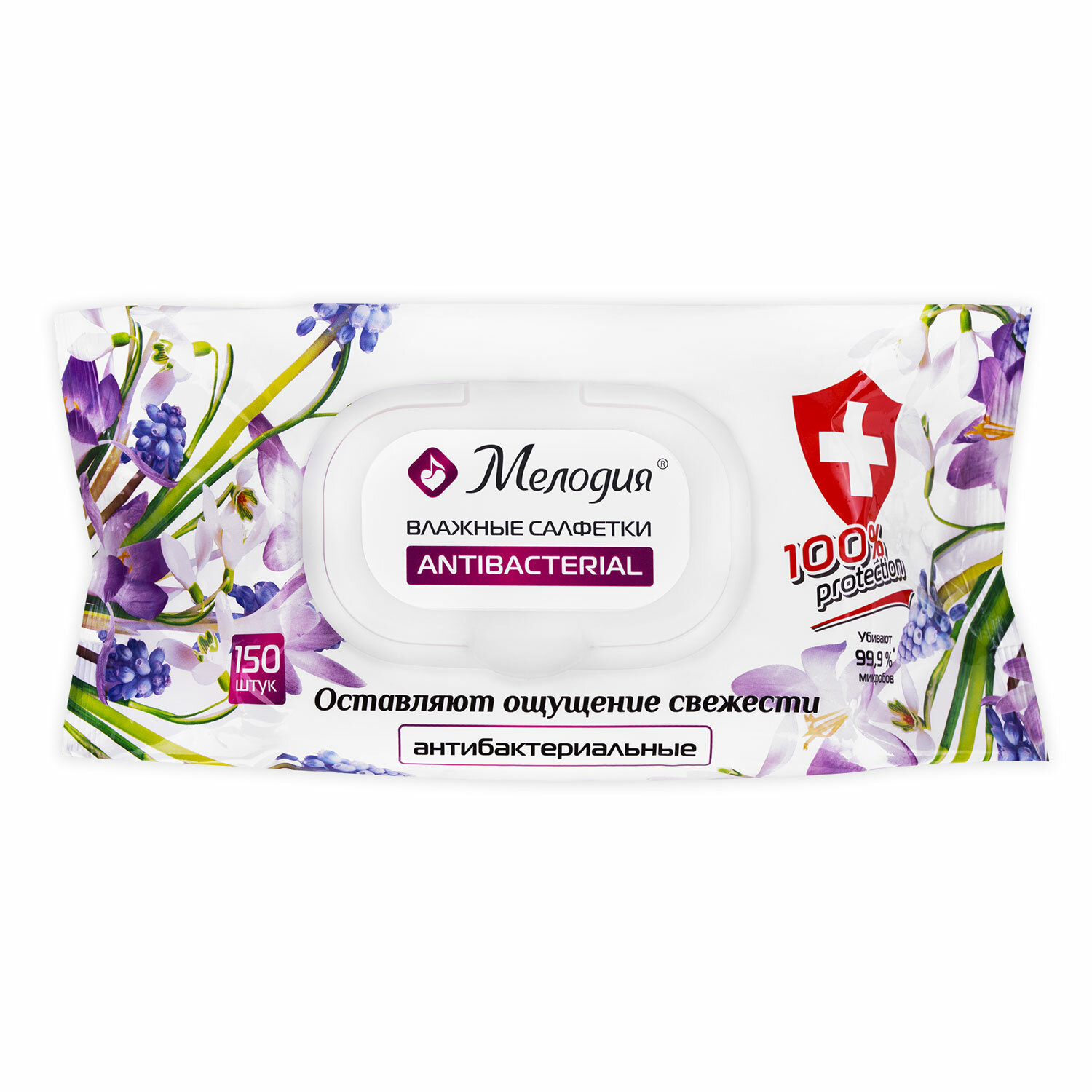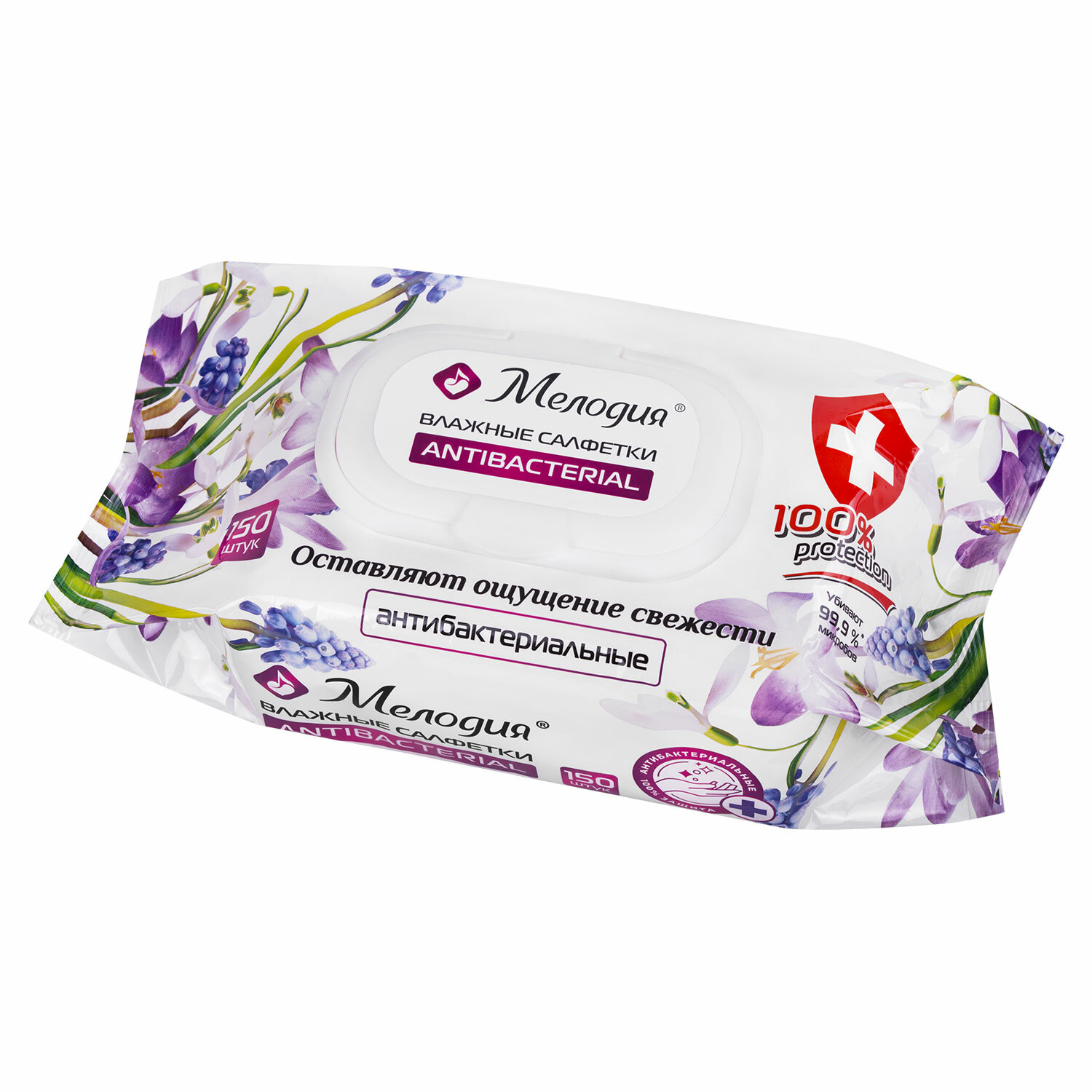 - Салфетки влажные 150 шт., АНТИБАКТЕРИАЛЬНЫЕ, с пластиковым клапаном, МЕЛОДИЯ, 115226