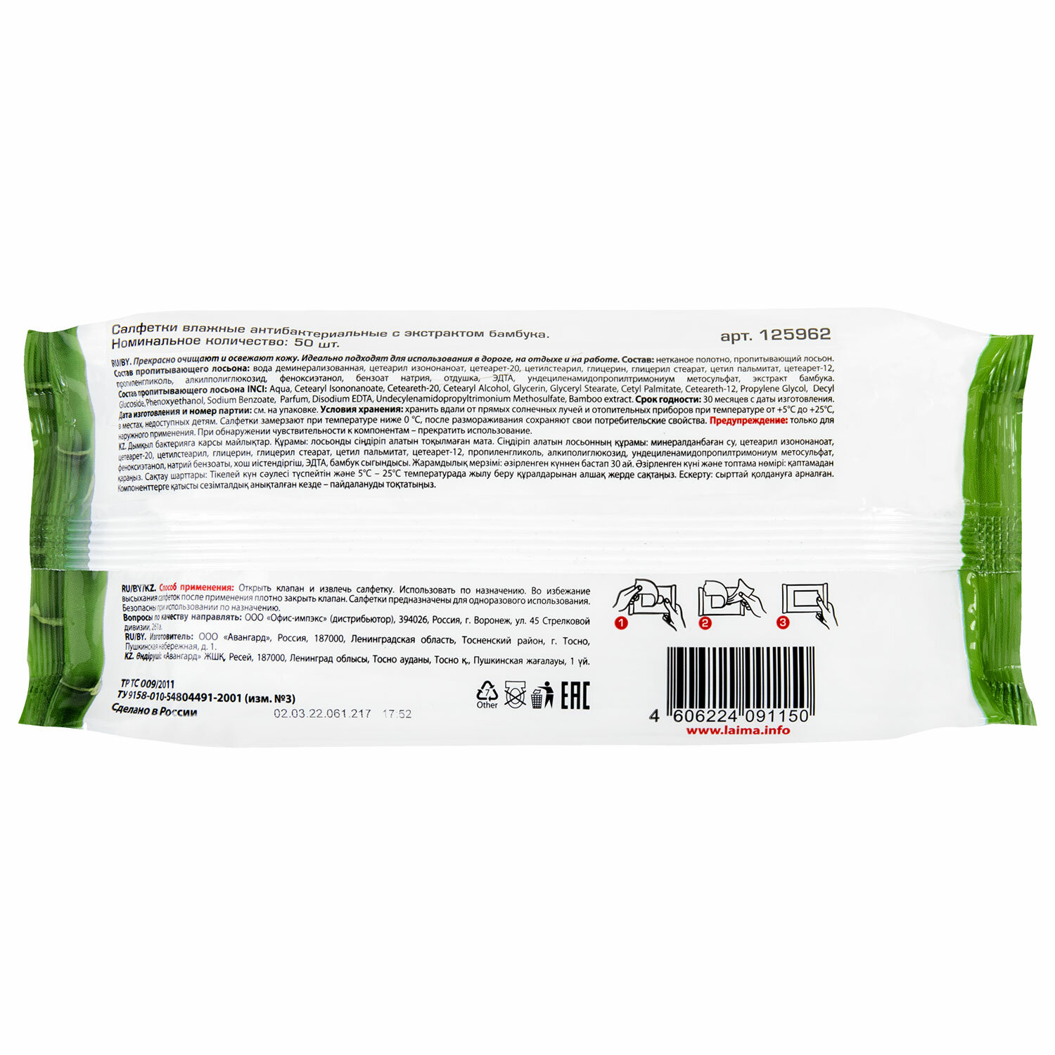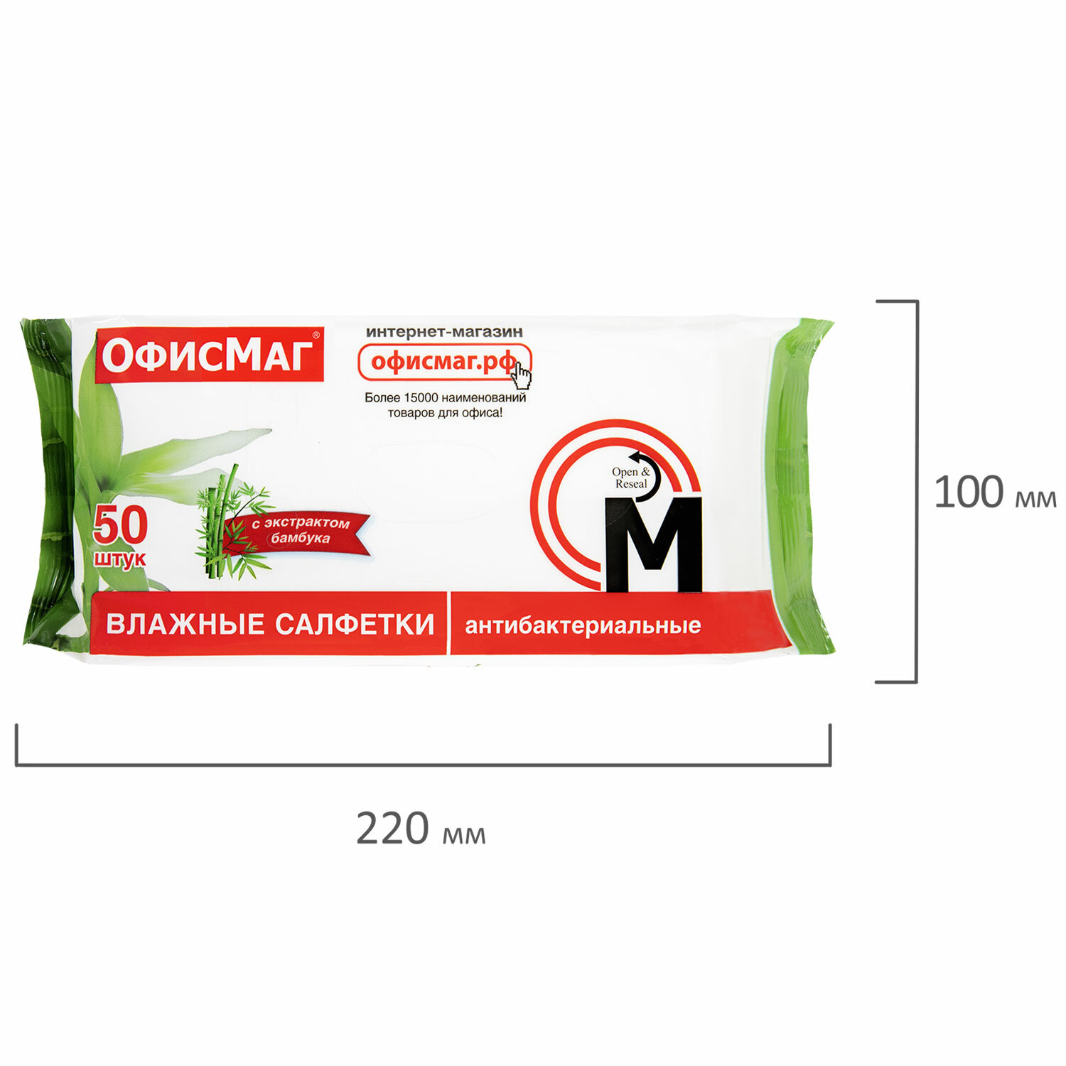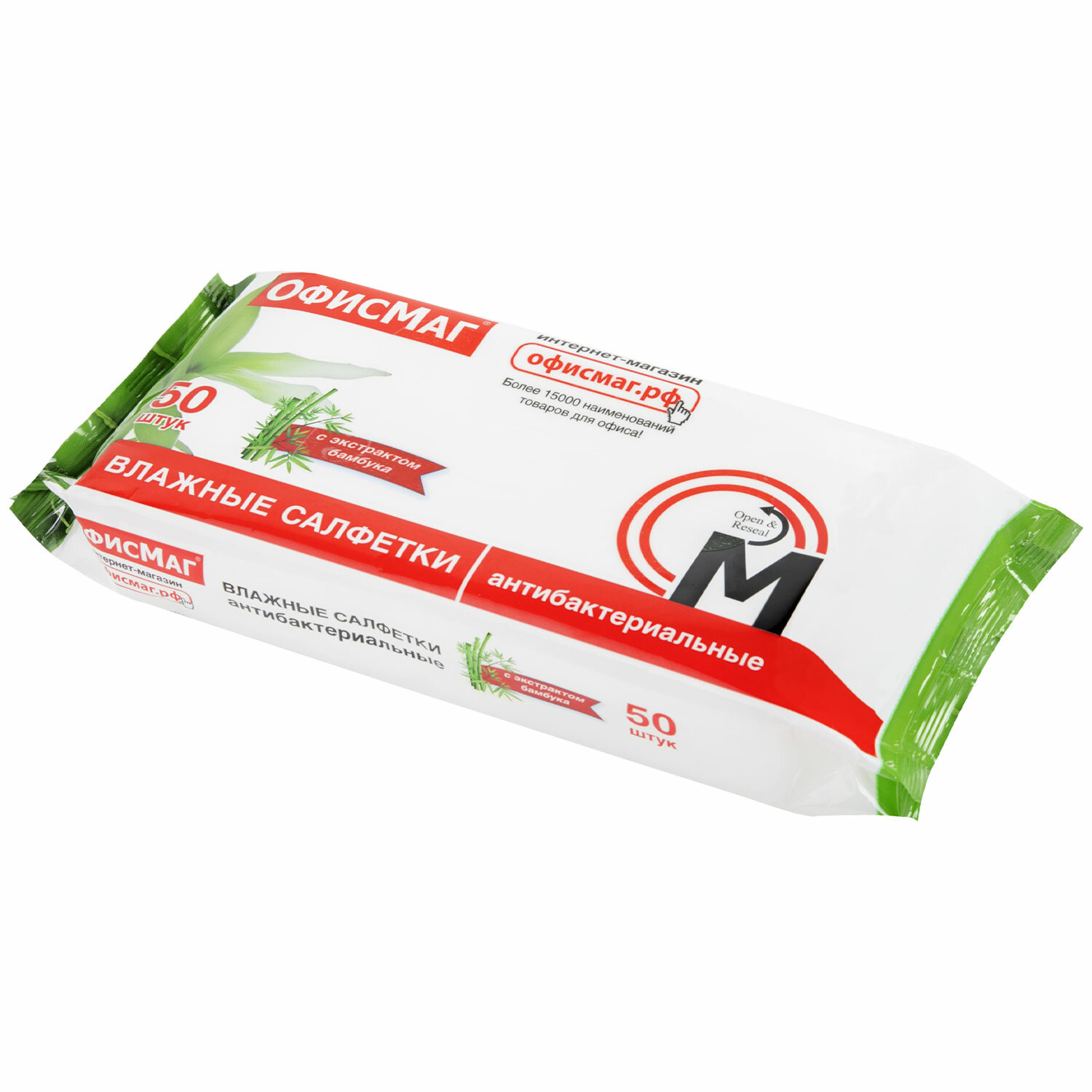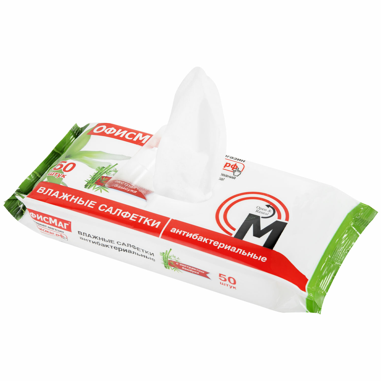 - Салфетки влажные, 50 шт., АНТИБАКТЕРИАЛЬНЫЕ, с экстрактом бамбука, ОФИСМАГ, 125962