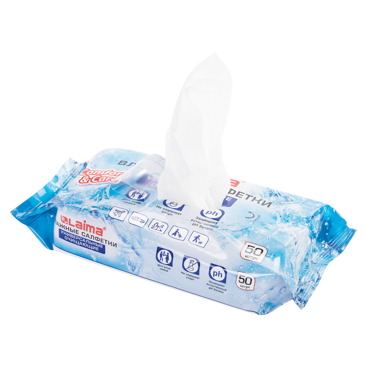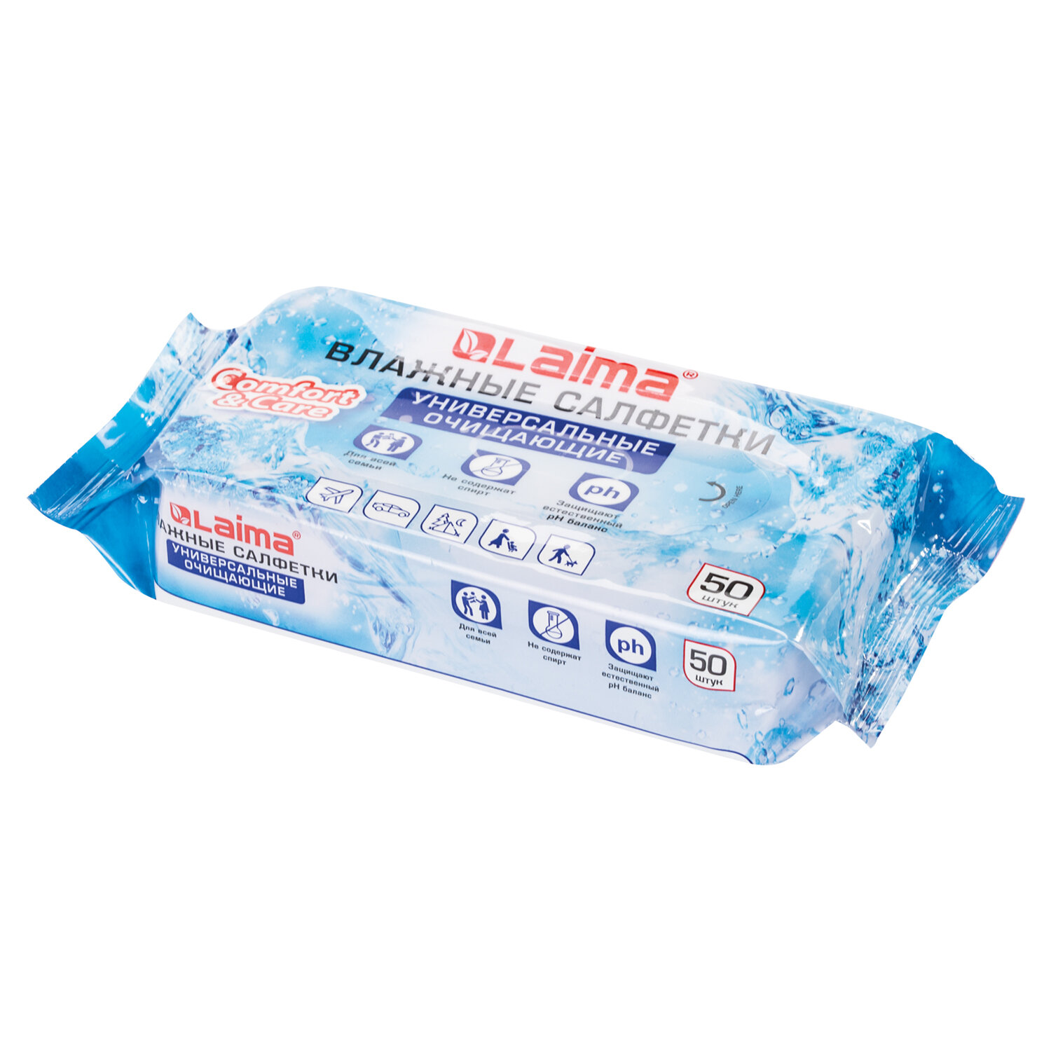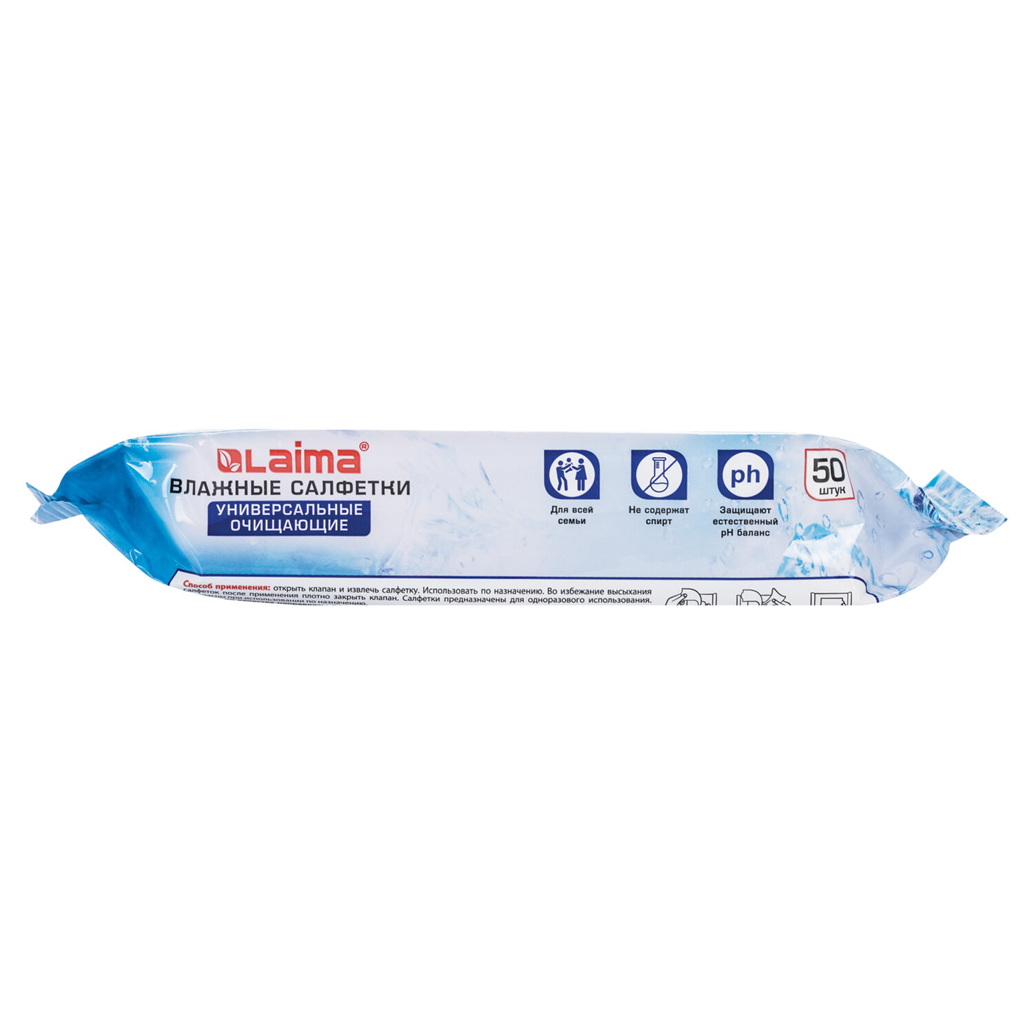 - Салфетки влажные 50 шт., УНИВЕРСАЛЬНЫЕ, очищающие для всей семьи, LAIMA, 125960