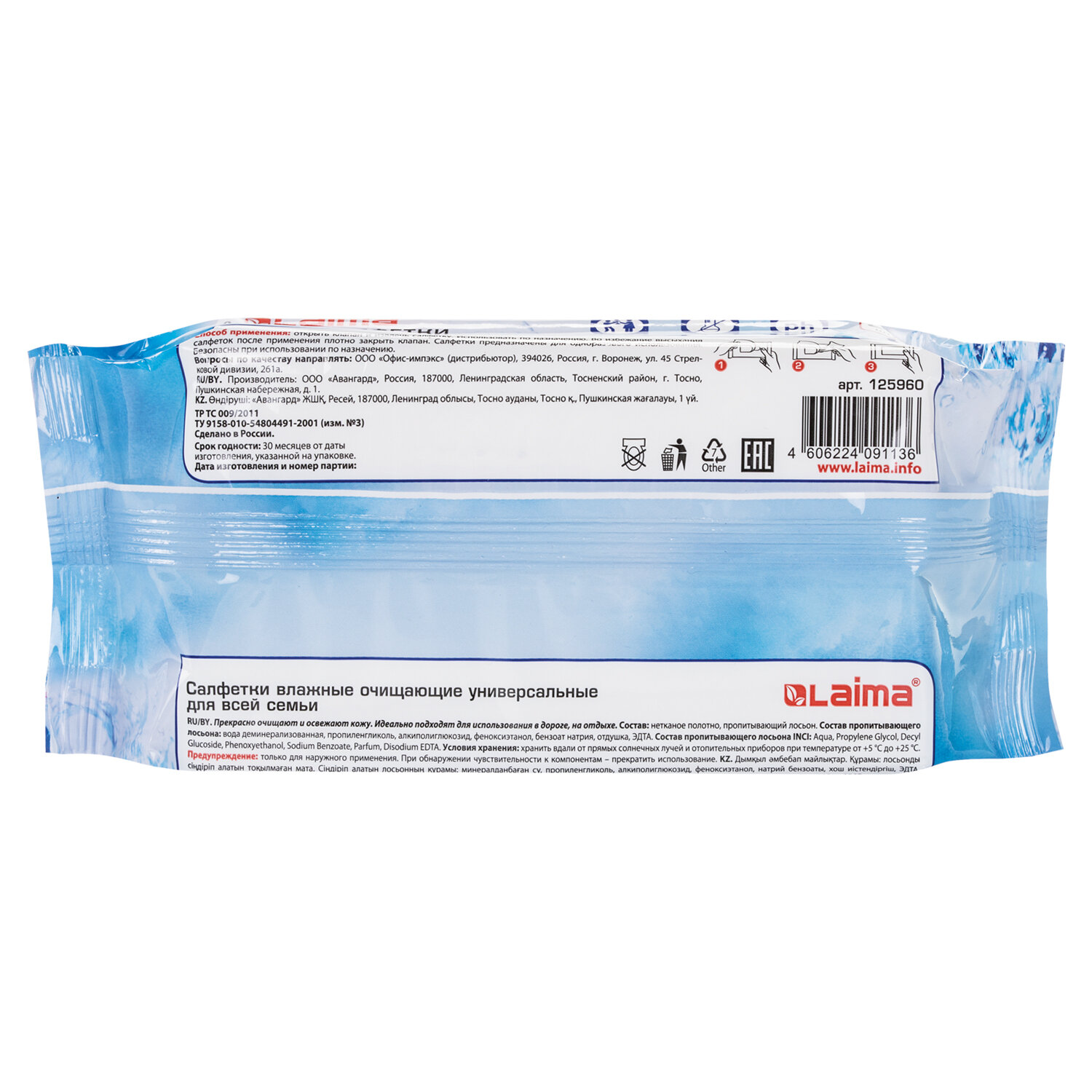 Салфетки влажные 50 шт., УНИВЕРСАЛЬНЫЕ, очищающие для всей семьи, LAIMA, 125960