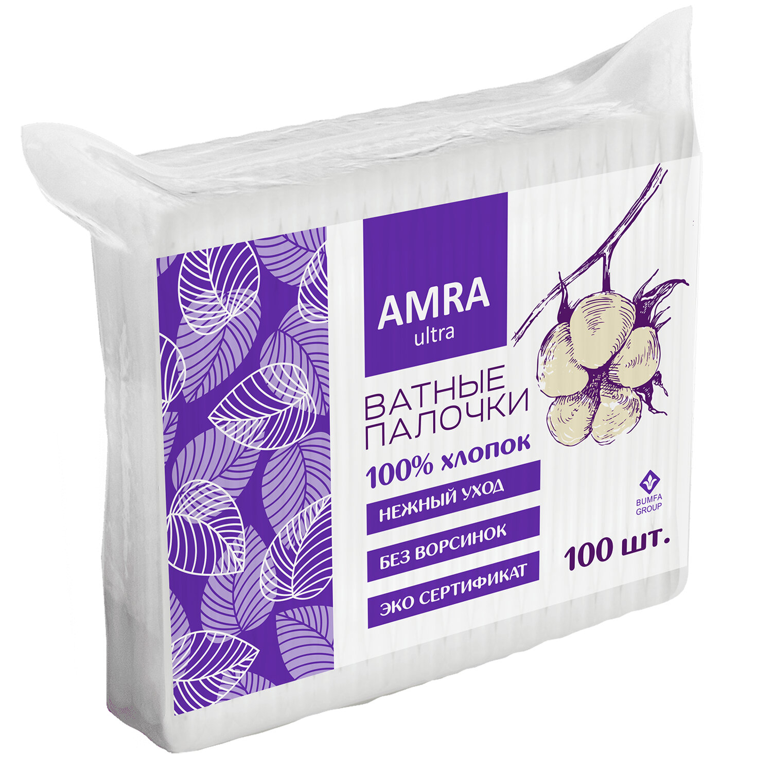 Ватные палочки 100 шт., AMRA, пакет, П00066647