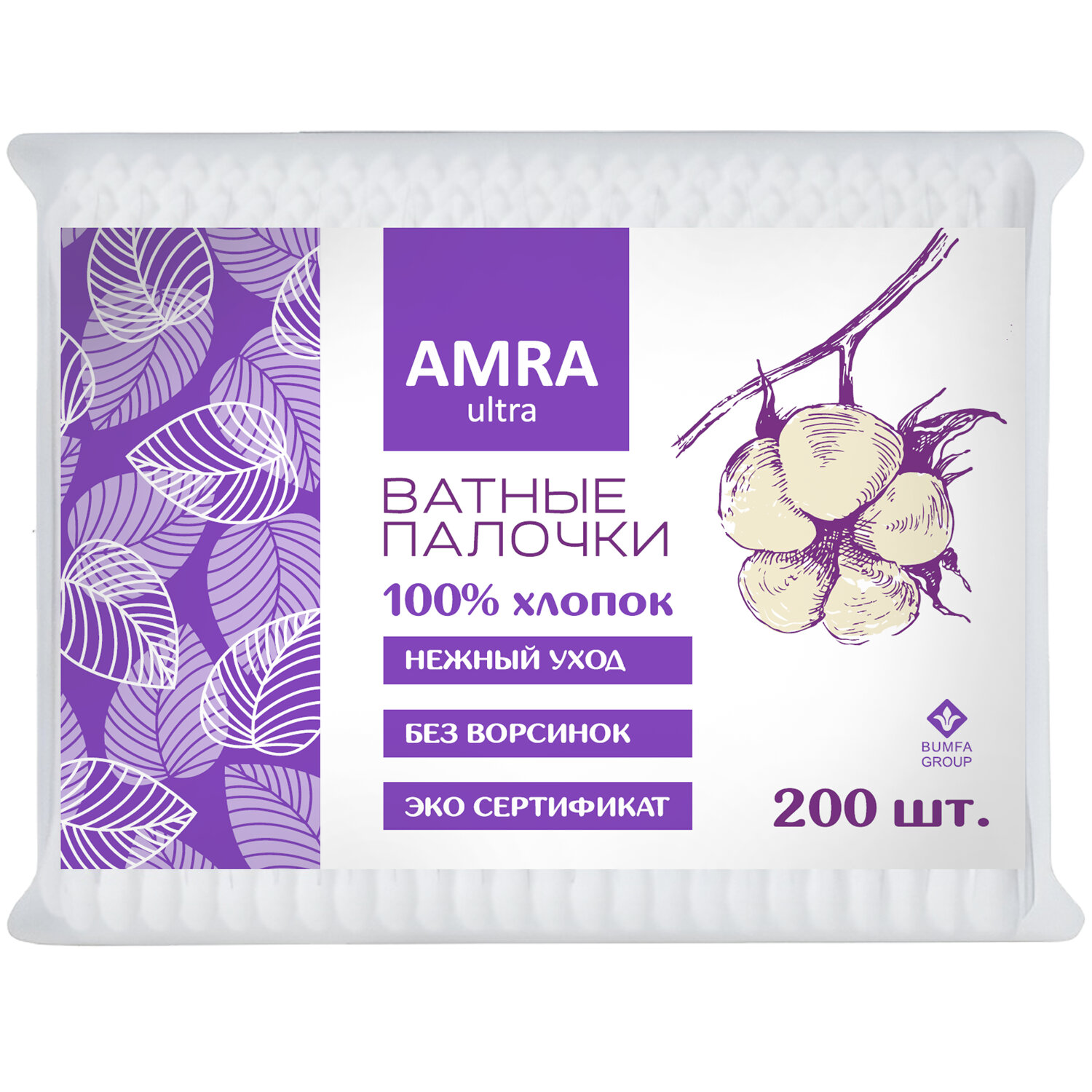 - Ватные палочки 200 шт., AMRA, пакет, П00066646