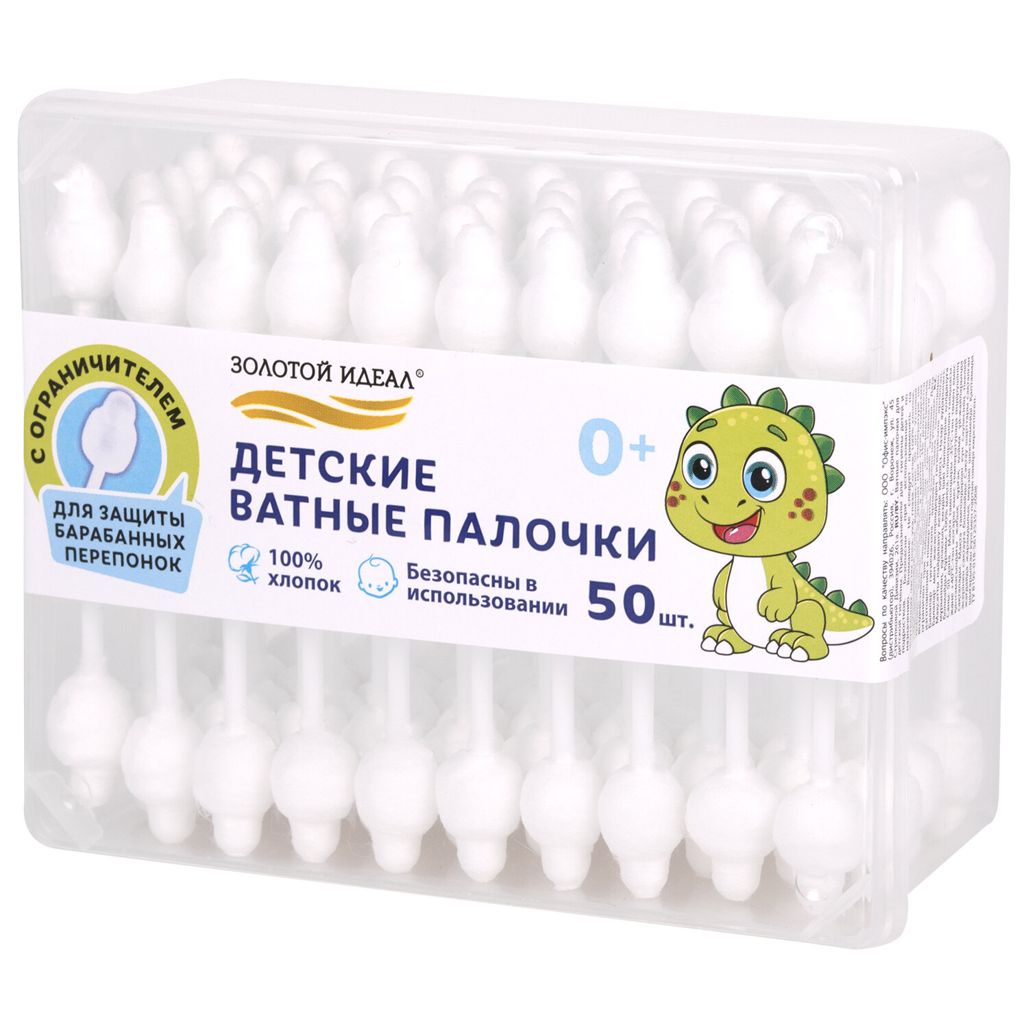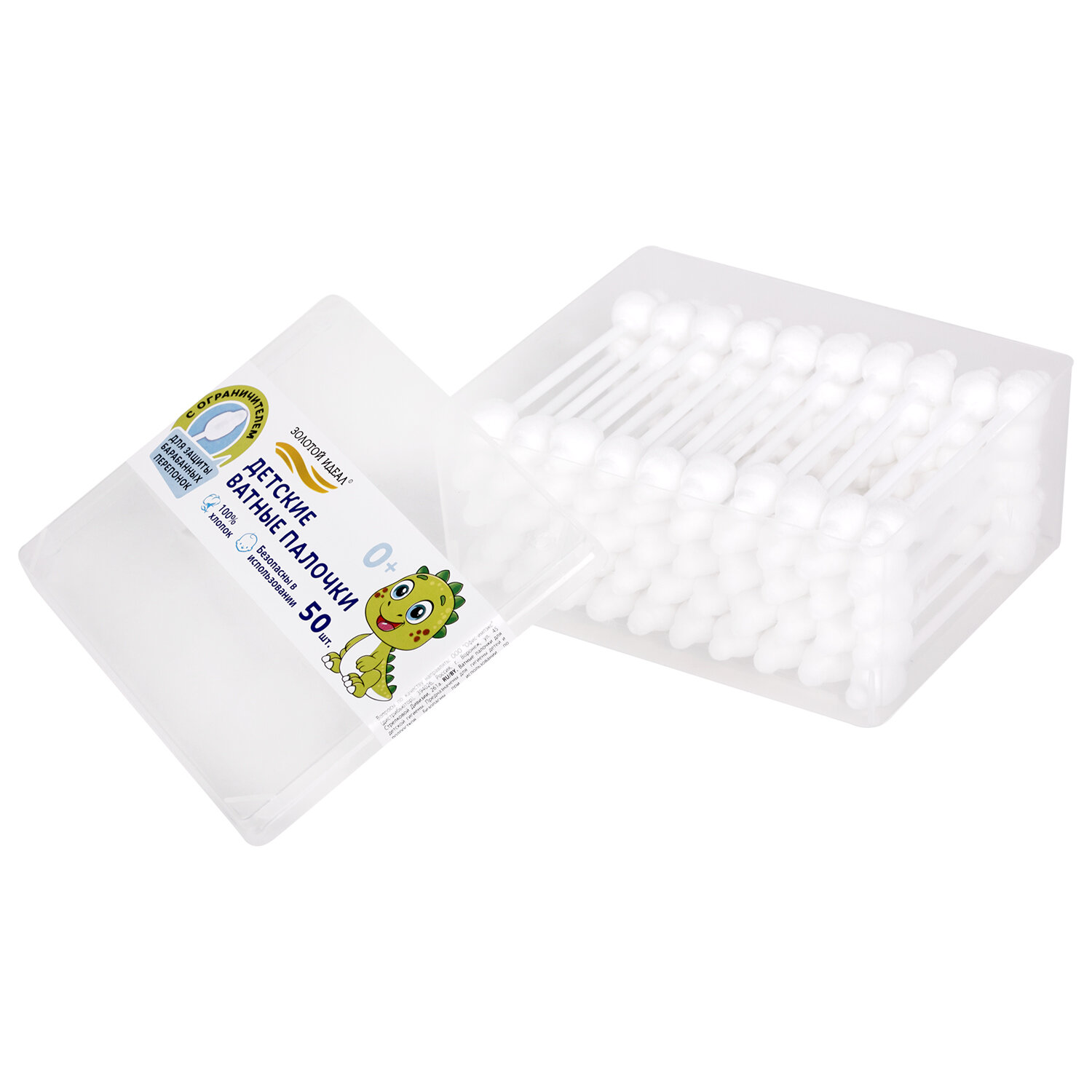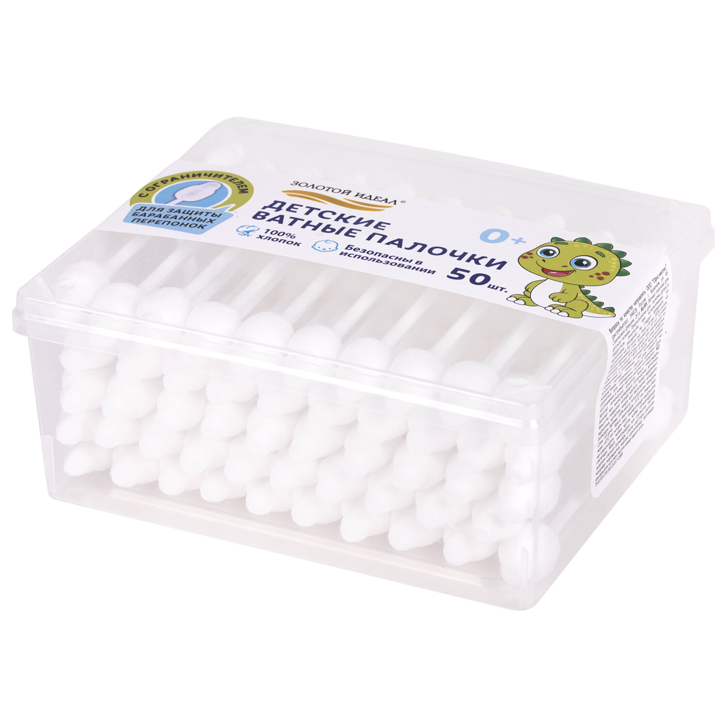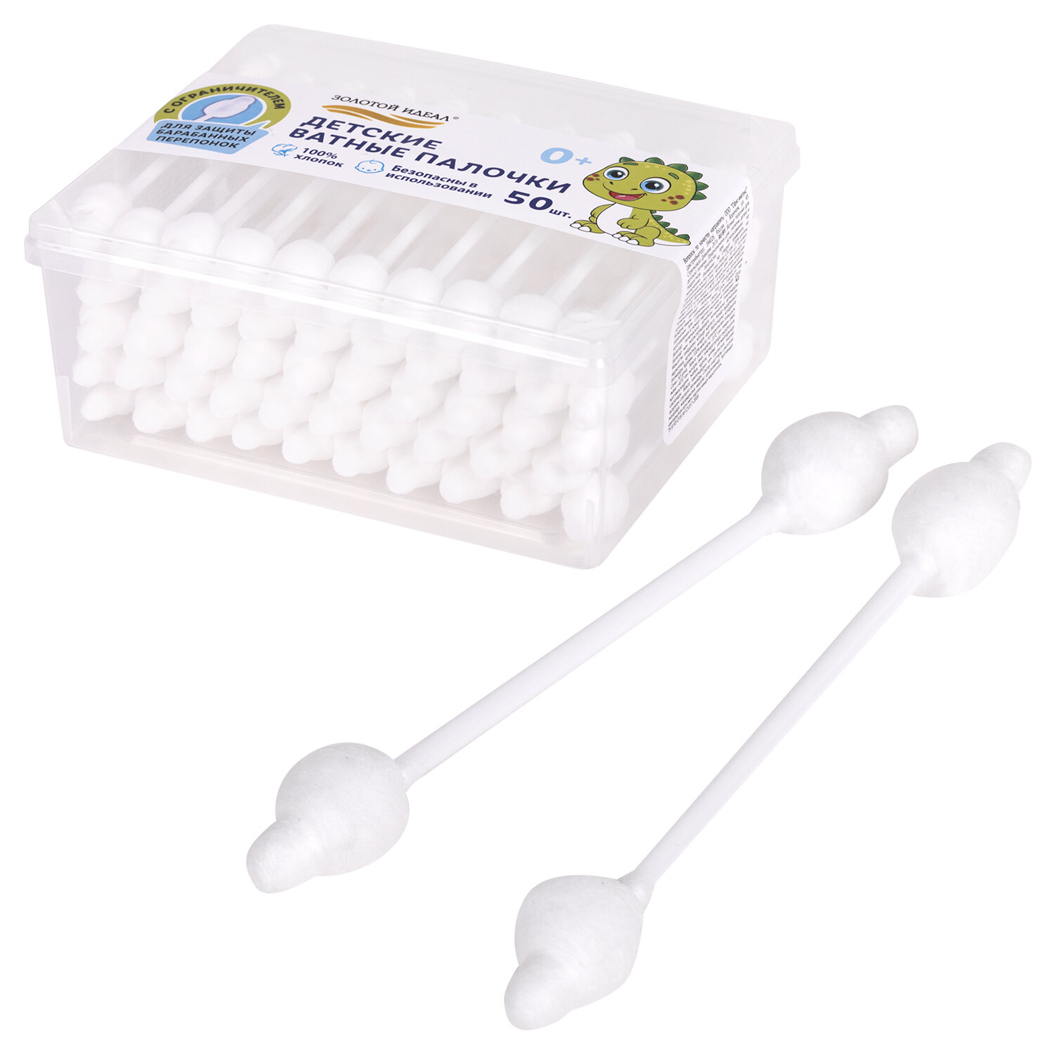 - Ватные палочки детские 50 шт., с ограничителем, ЗОЛОТОЙ ИДЕАЛ, 100% хлопок, 116532