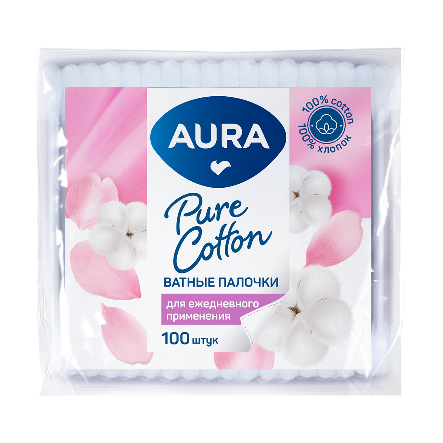 - Ватные палочки КОМПЛЕКТ 100 шт., AURA, пакет, 20773, 13140