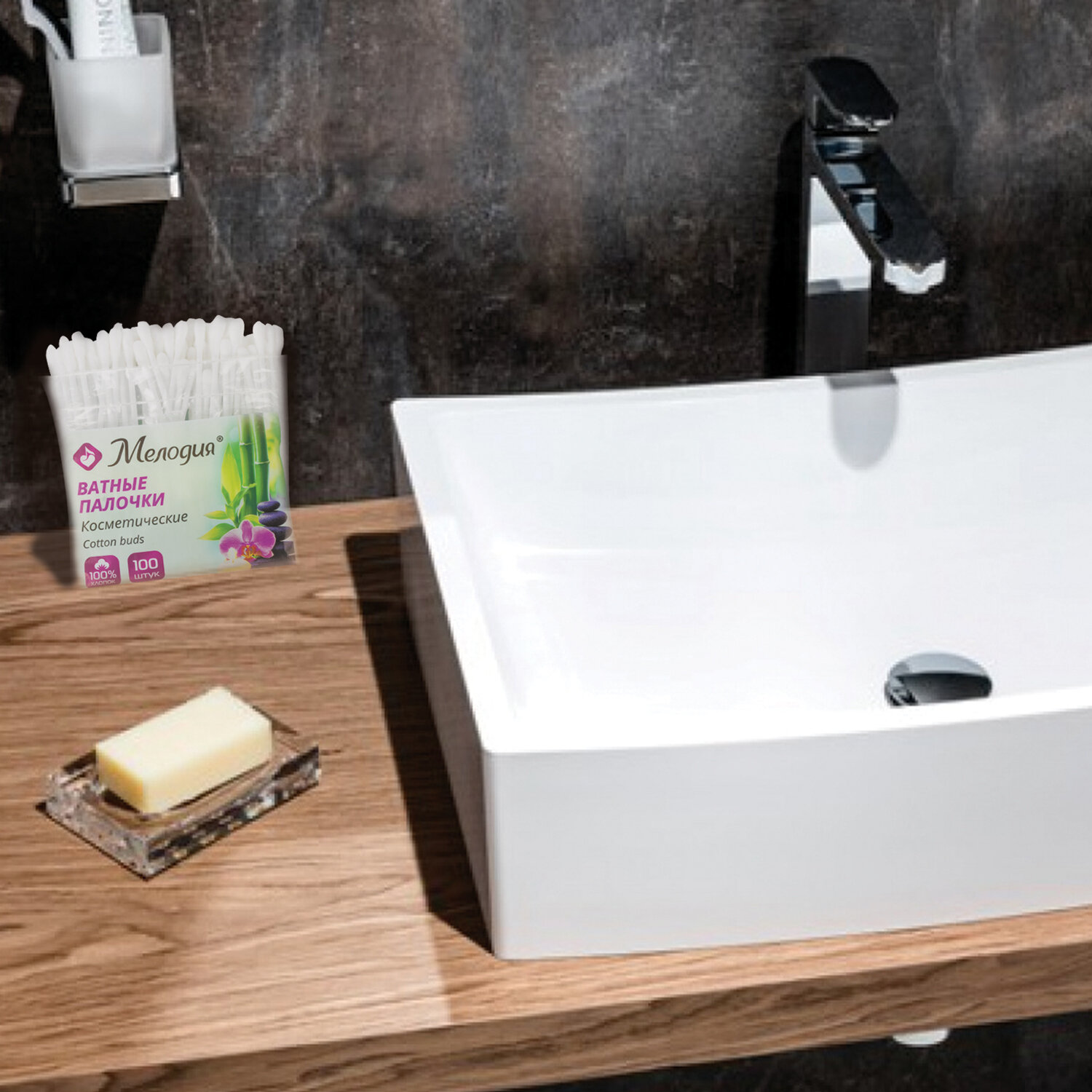 - Ватные палочки КОМПЛЕКТ 100 шт., МЕЛОДИЯ, полиэтиленовый пакет, 128854