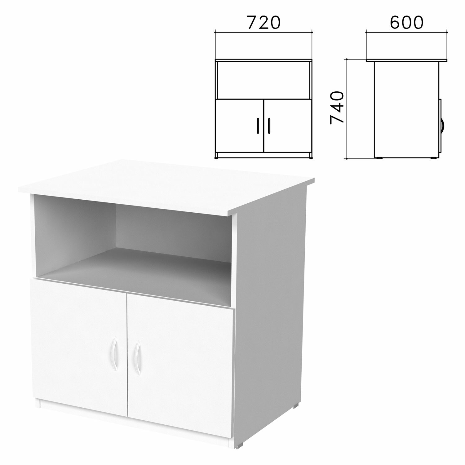 Тумба для оргтехники "Бюджет", 720х600х740 мм, 2 двери, белый, 402658-290