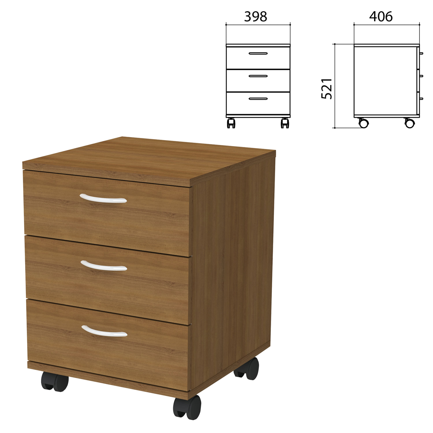 - Тумба подкатная "Бюджет", 398х406х521 мм, 3 ящика, орех французский, 402952-190