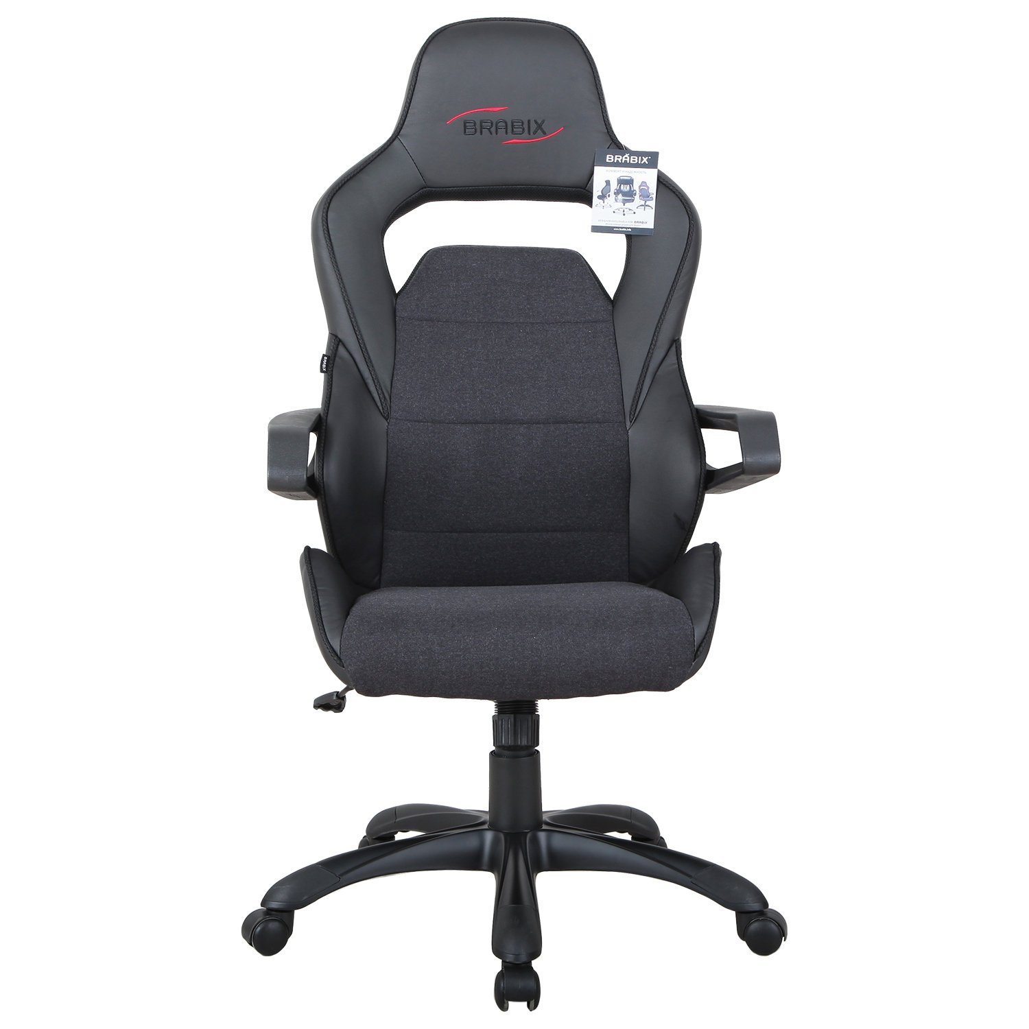 Кресло компьютерное BRABIX "Nitro GM-001", ткань, экокожа, черное, 531817