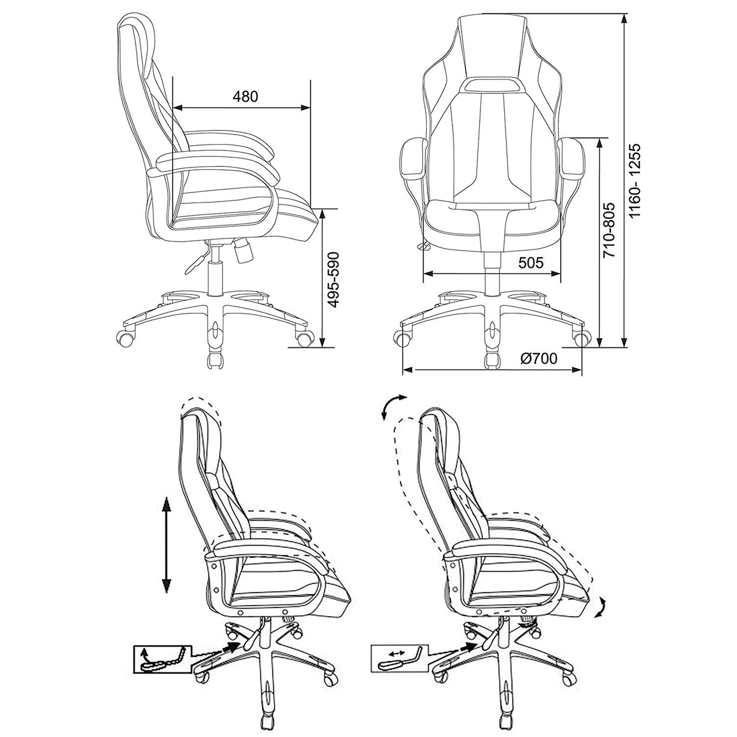 Модель оснащена механизмом качания «топ-ган» с регулировкой под вес пользователя и возможностью фиксации в вертикальном положении.