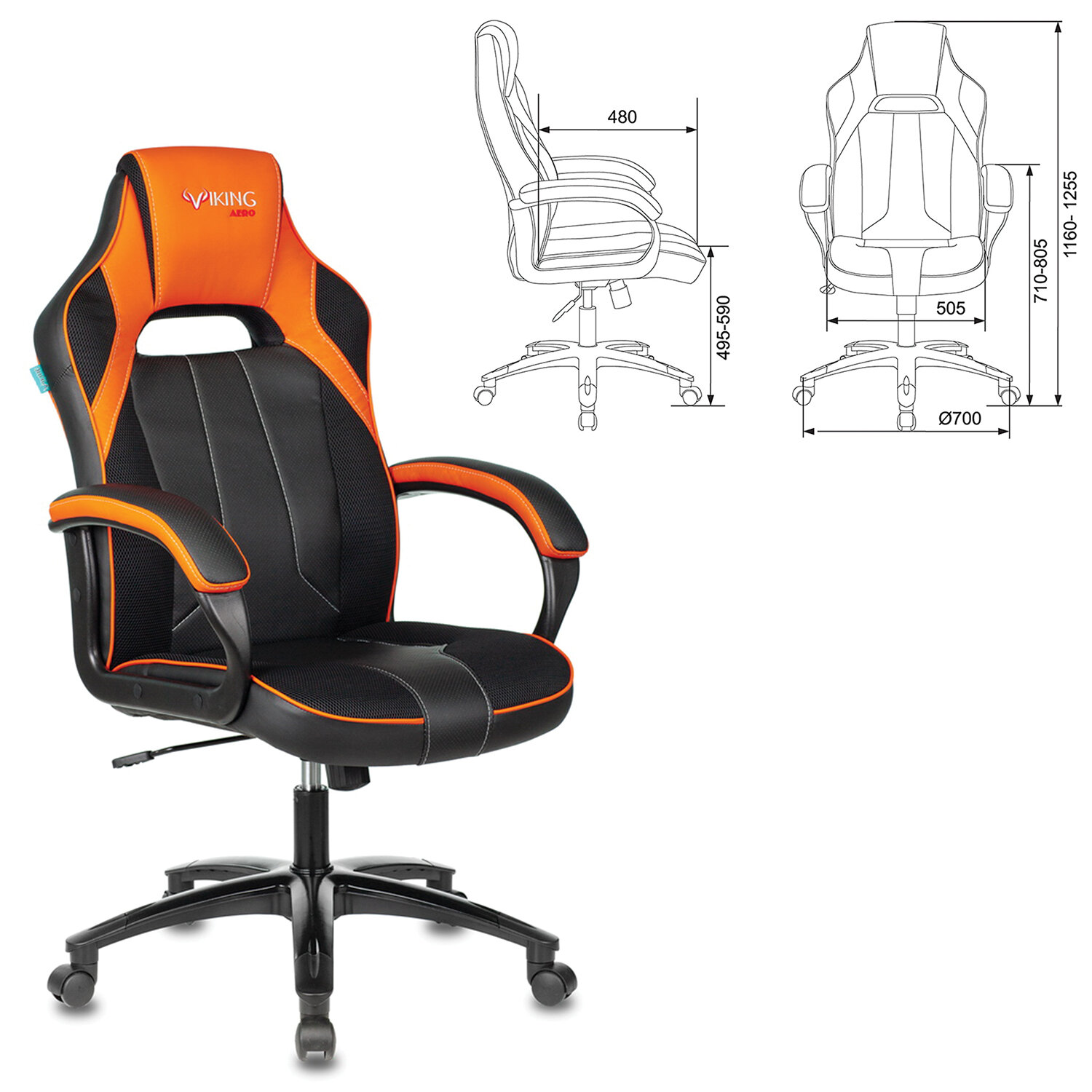 Кресло компьютерное Zombie VIKING 2 AERO, экокожа/ткань, черное/оранжевое, 1364177