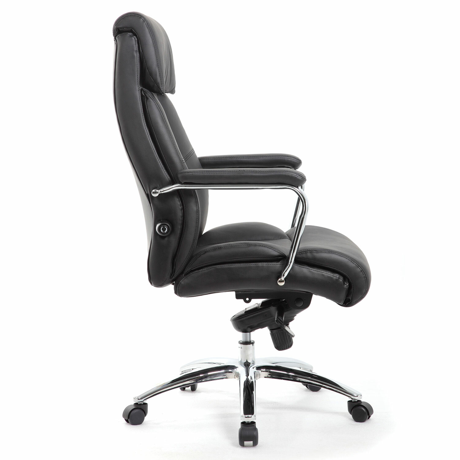 Стильные хромированные элементы, увеличенные размеры сиденья и спинки, а также особый механизм регулировки поддержки поясницы исключают утомление в течение всего рабочего дня.