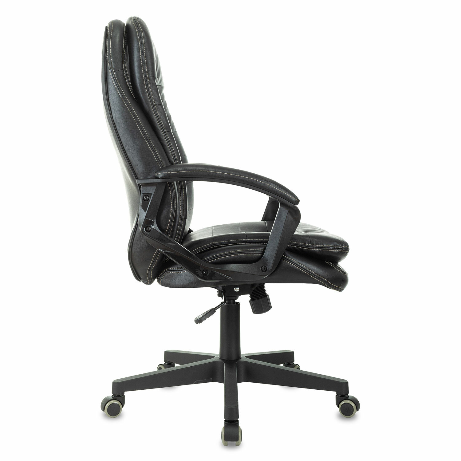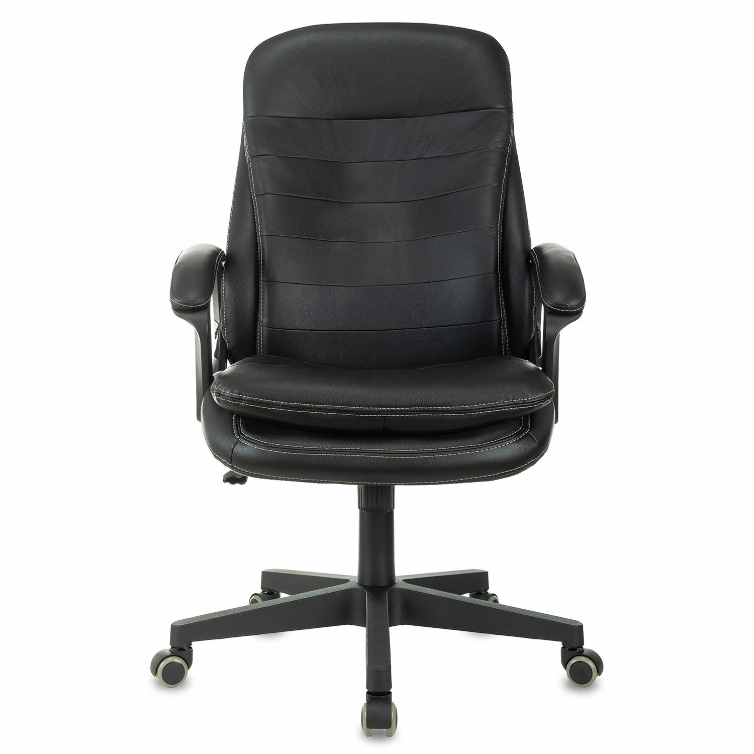 Конструкция кресла отвечает всем нормам современной эргономики: высокая спинка, упругая набивка и подлокотники с мягкими накладками. Всё это обеспечит необходимым комфортом пользователя.