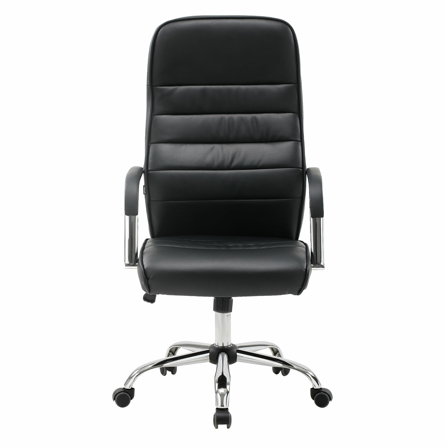 Высокая, эргономичная спинка и хромированные подлокотники с накладками из экокожи обеспечат пользователя необходимым комфортом.