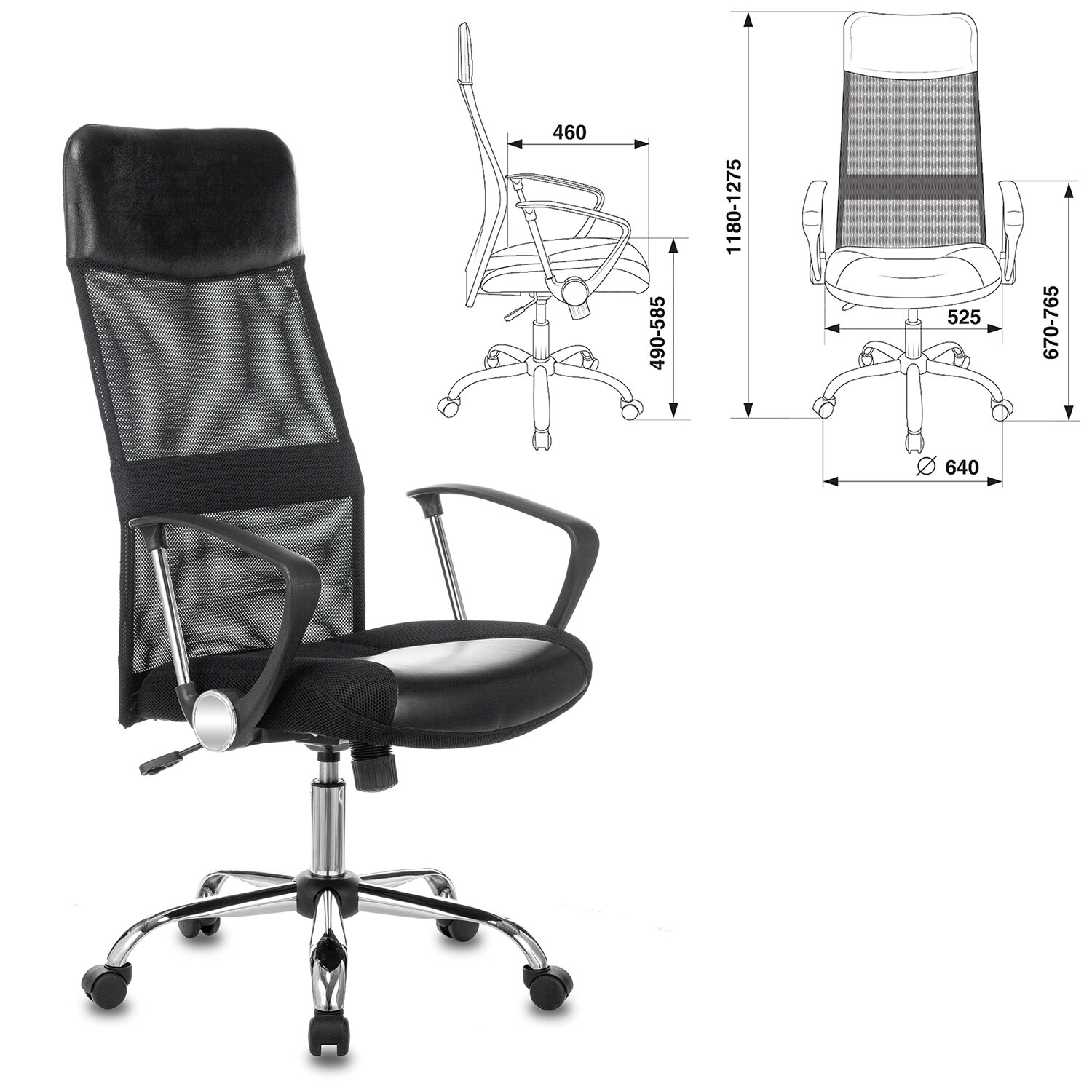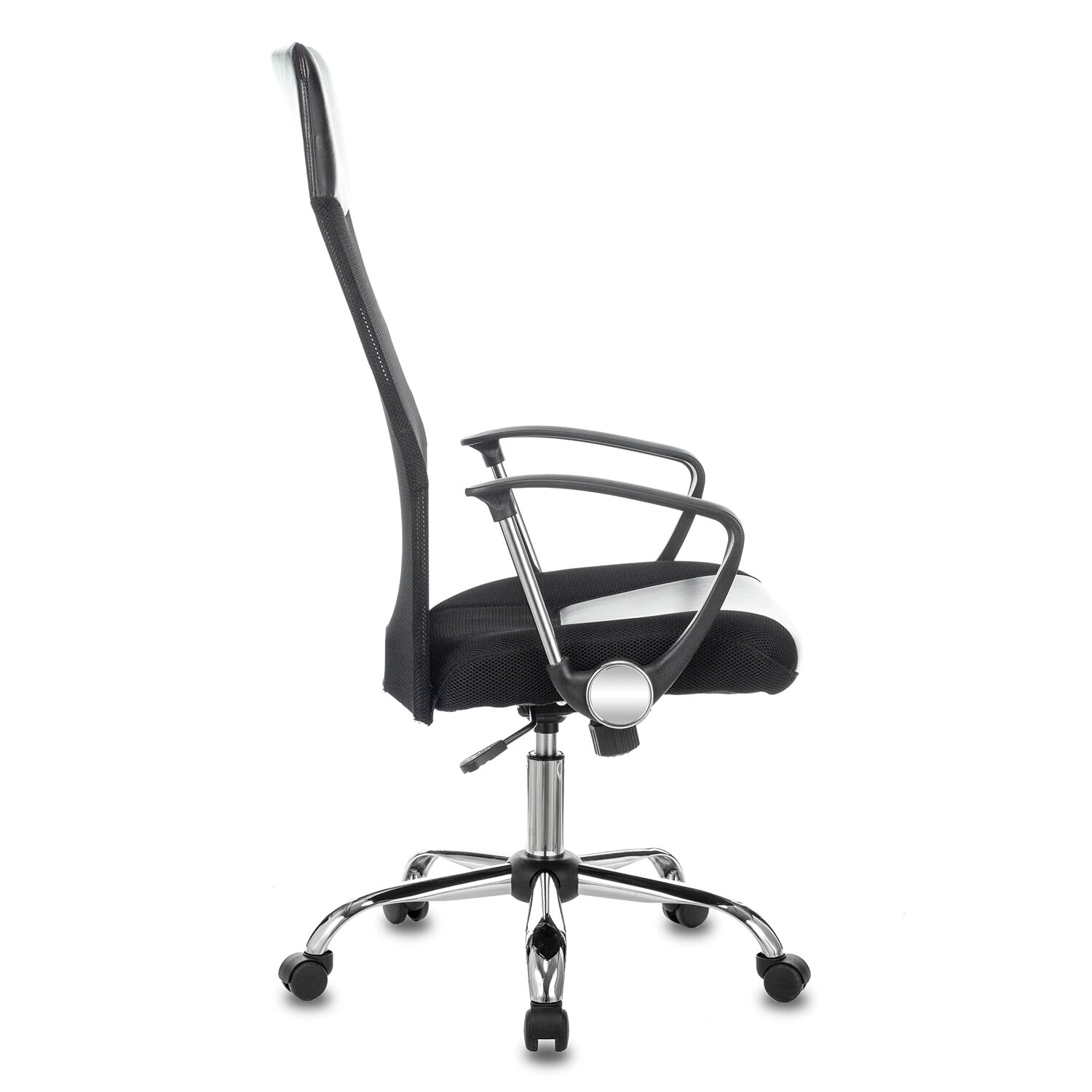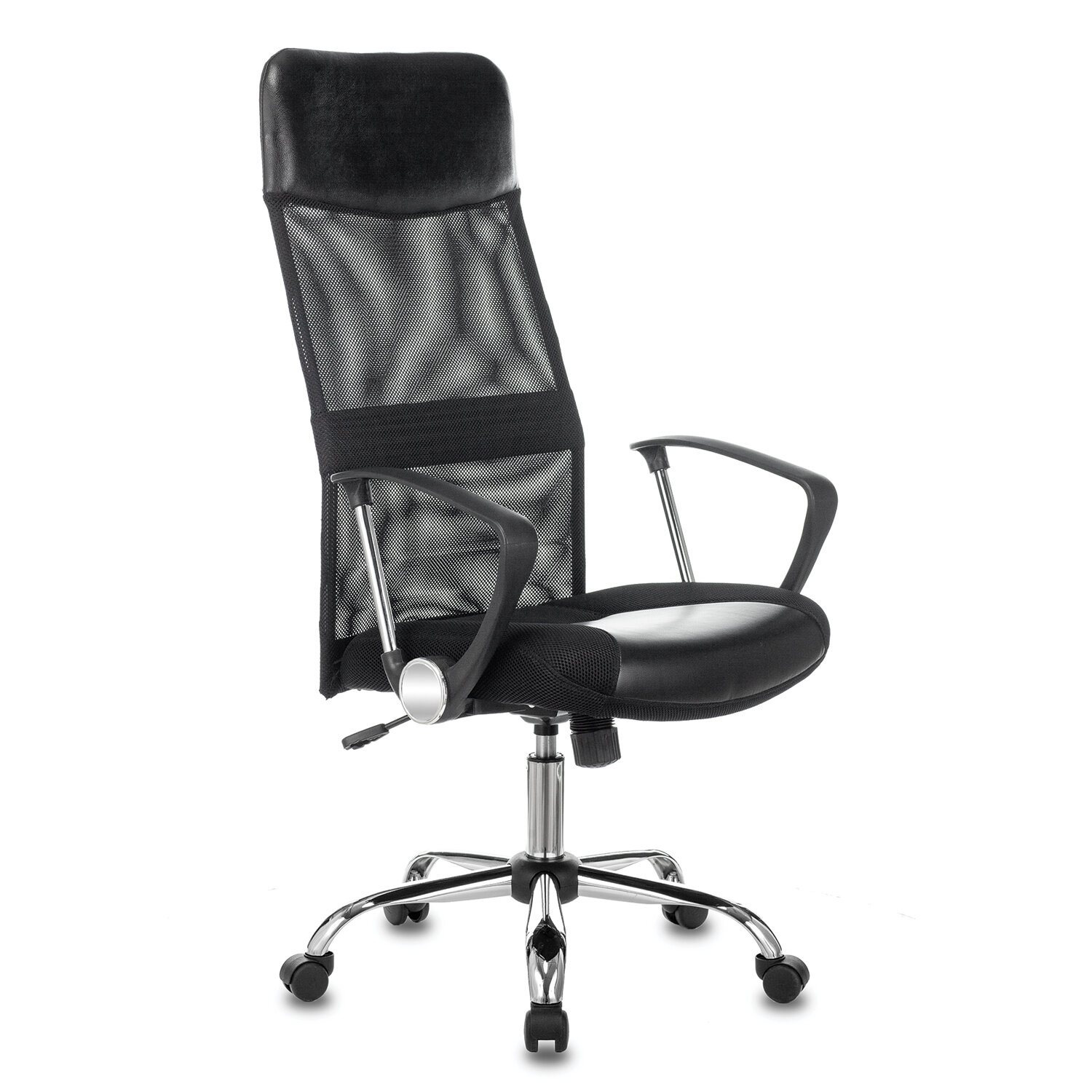 Пятилучие из высококачественного пластика рассчитано на вес до 120 кг. Кресло офисное CH-600SL, хром, ткань-сетка/кожзам, черное, 1380230
