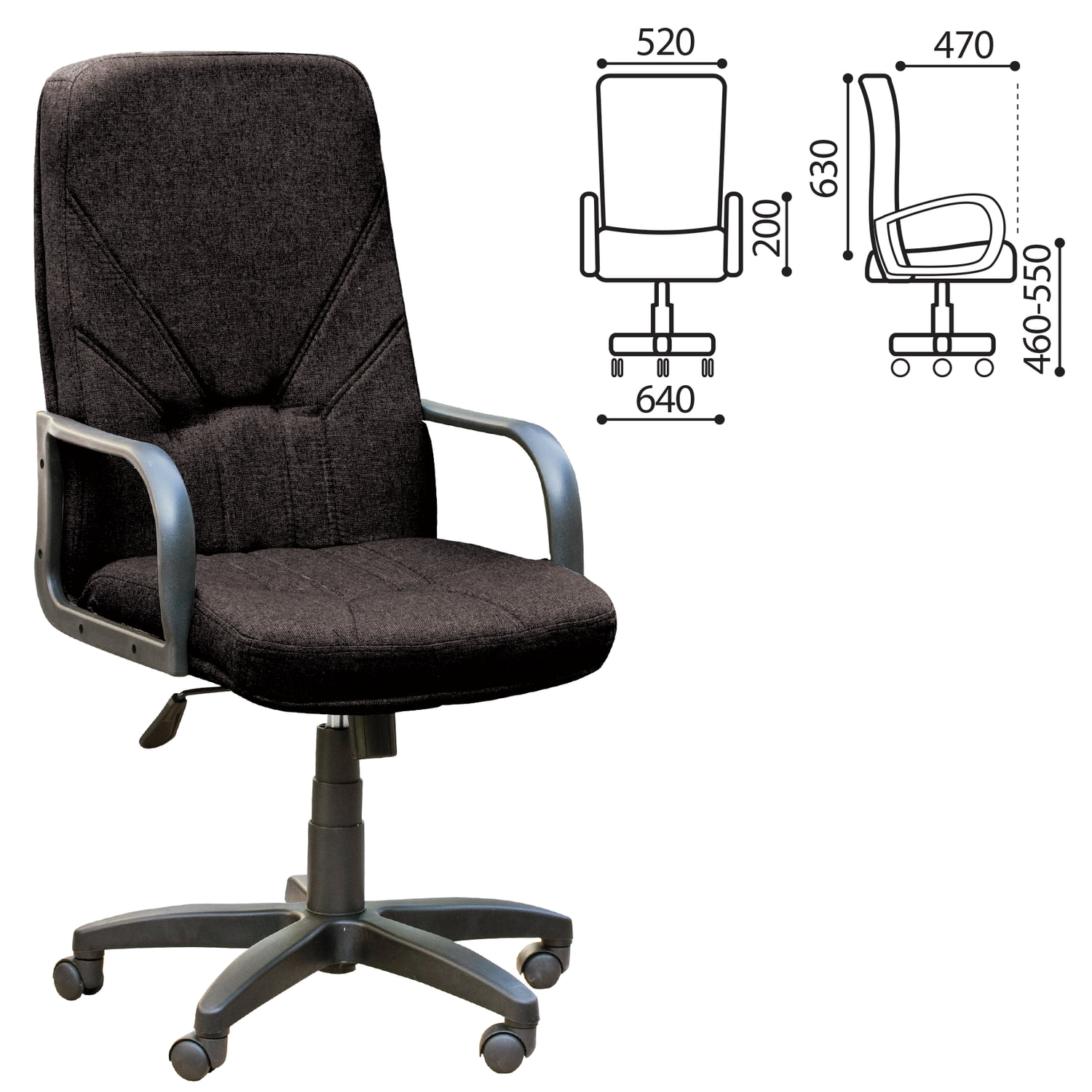 - Кресло офисное "Менеджер", ткань, монолитный каркас, черное С-11, В-14