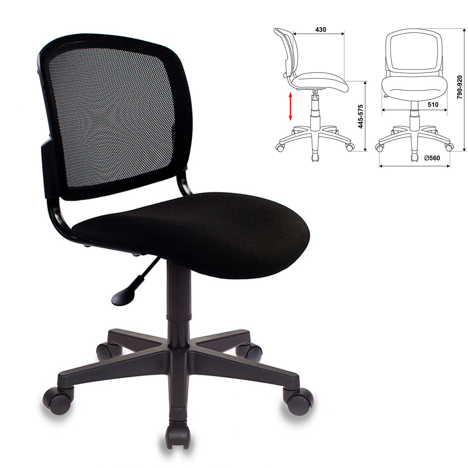 Кресло оператора CH-296NX без подлокотников, черное, 956343