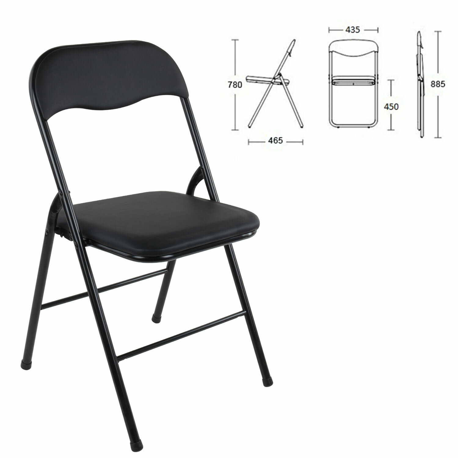 Стул складной BRABIX "Golf CF-007", черный каркас, кожзам черный, 531565
