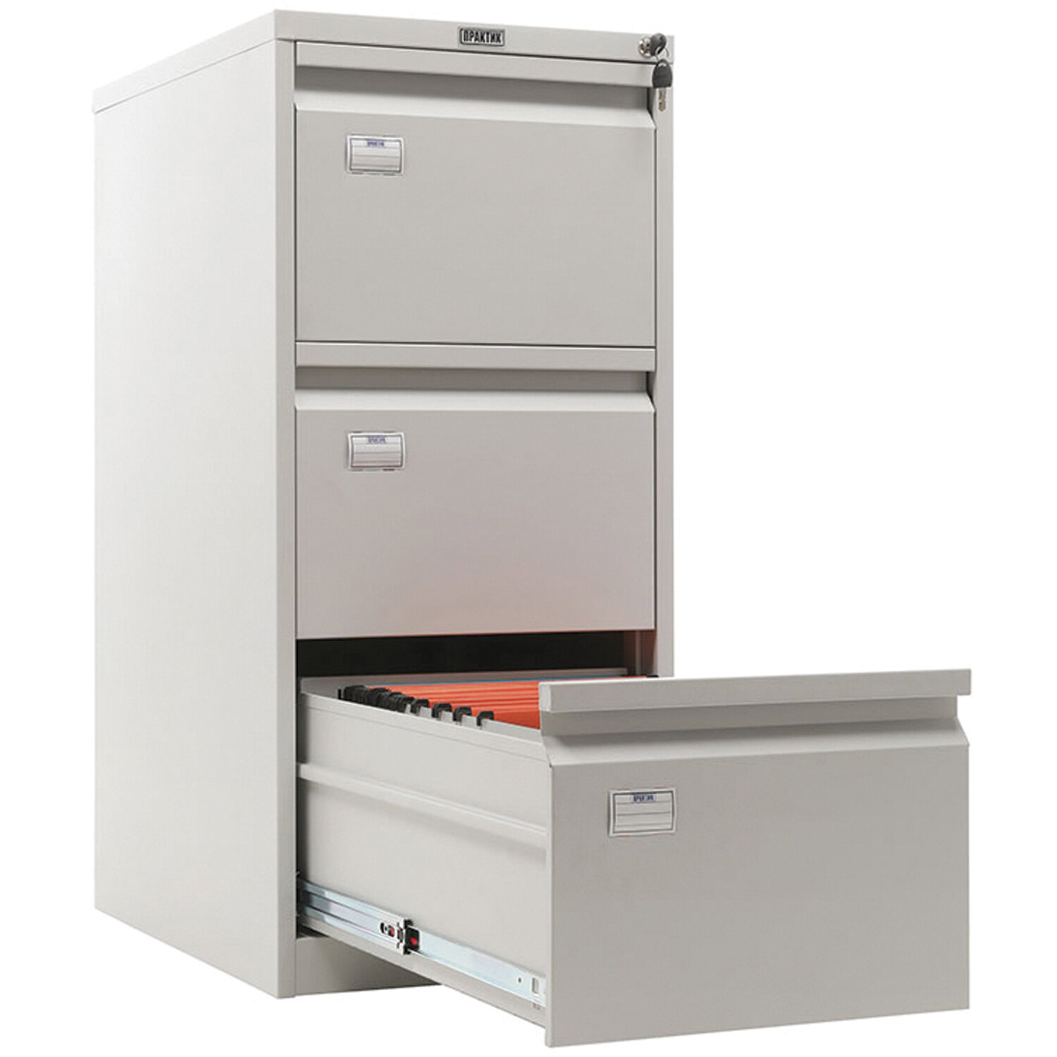 Картотечный шкаф обеспечивает эффективный и рациональный способ хранения документов формата А4 (210х297 мм) и Foolscap (366х242 мм). Шкаф картотечный ПРАКТИК "AFC-03", 1008х470х646 мм, 3 ящика, для 165 подвесных папок, формат папок Foolscap или A4 (БЕЗ ПАПОК)