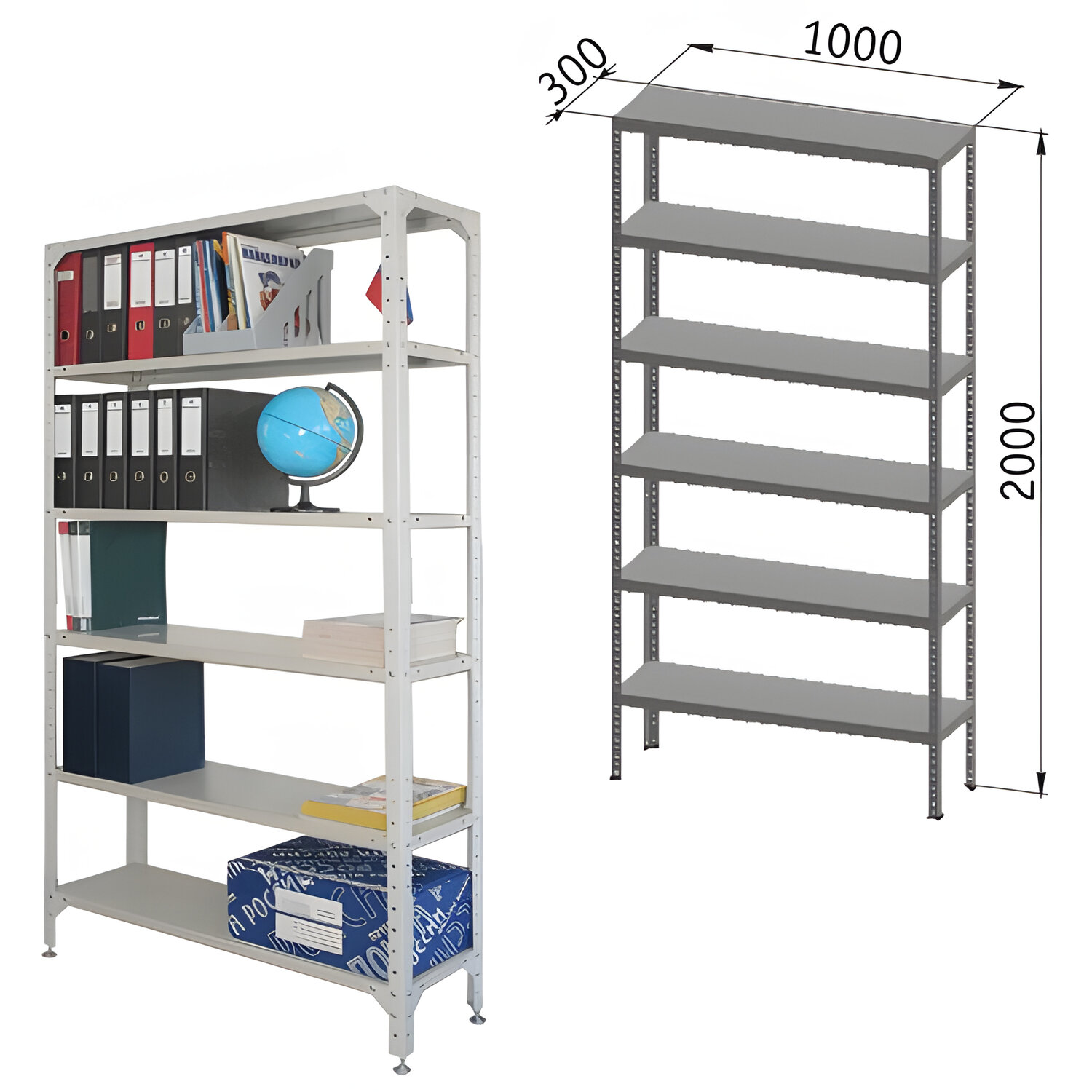 - Стеллаж металлический "УНИВЕРСАЛ", 2000х1000х300 мм, УСИЛЕННЫЕ СТОЙКИ, 6 полок, регулируемые опоры, 290144