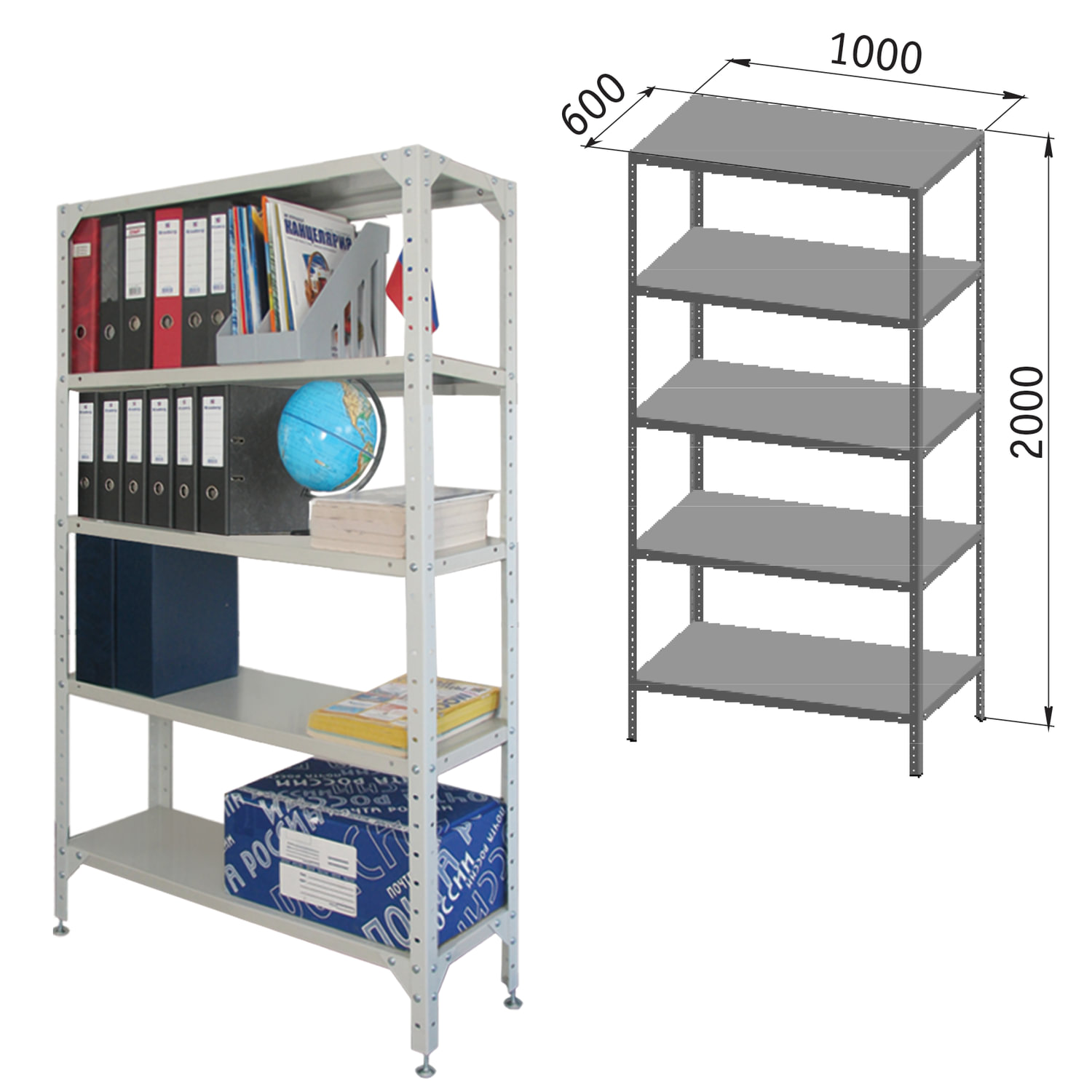 - Стеллаж металлический "УНИВЕРСАЛ", 2000х1000х600 мм, УСИЛЕННЫЕ СТОЙКИ, 5 полок, регулируемые опоры, 290243