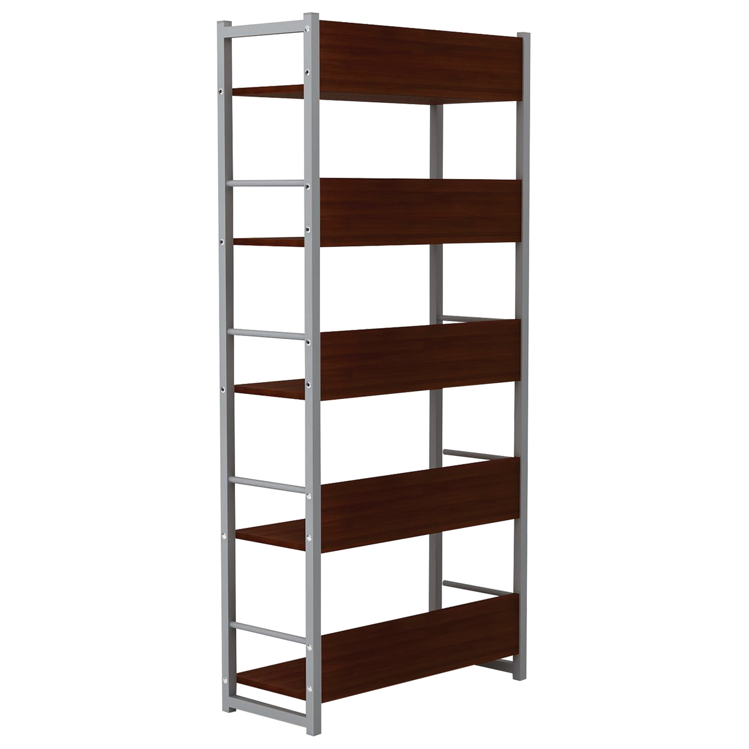 Современное решение по доступной цене. Стеллаж на металлокаркасе, 1630х650х300 мм, серый каркас, 5 полок ЛДСП орех, Д-343