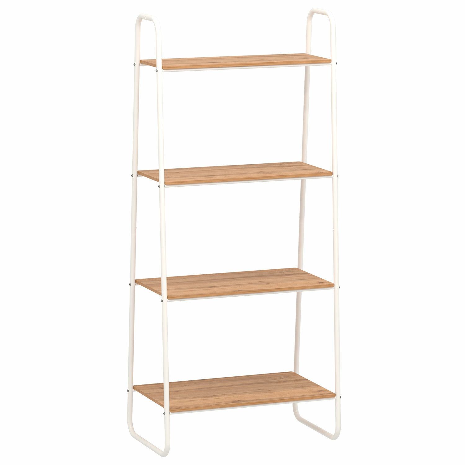 - Стеллаж на металлокаркасе "Скандинавия-24", 650х385х1470 мм, 4 полки ЛДСП, белый/дуб, CТCП24 Б