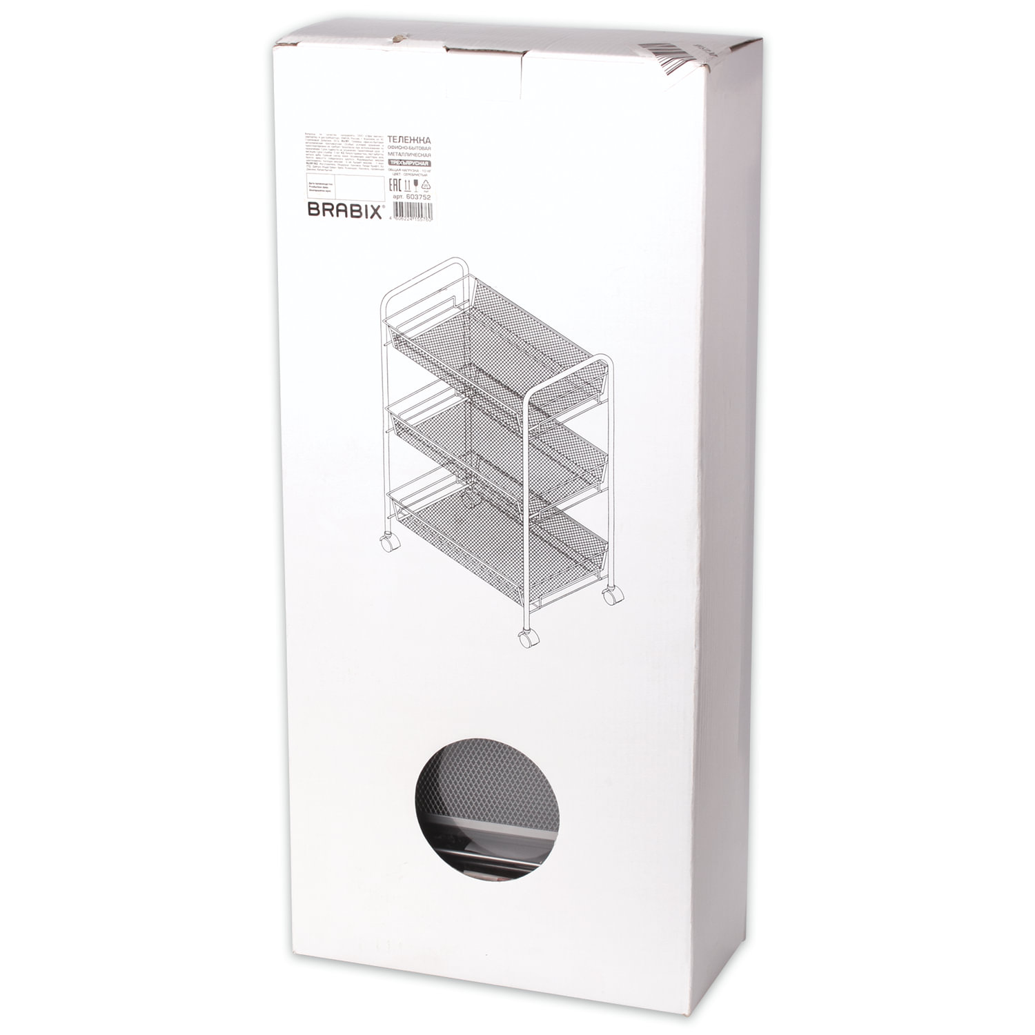 - Этажерка (тележка) BRABIX офисно-бытовая 3 яруса, на колесах, металл, серебристая, 43,5х26х62,5 см, 603752