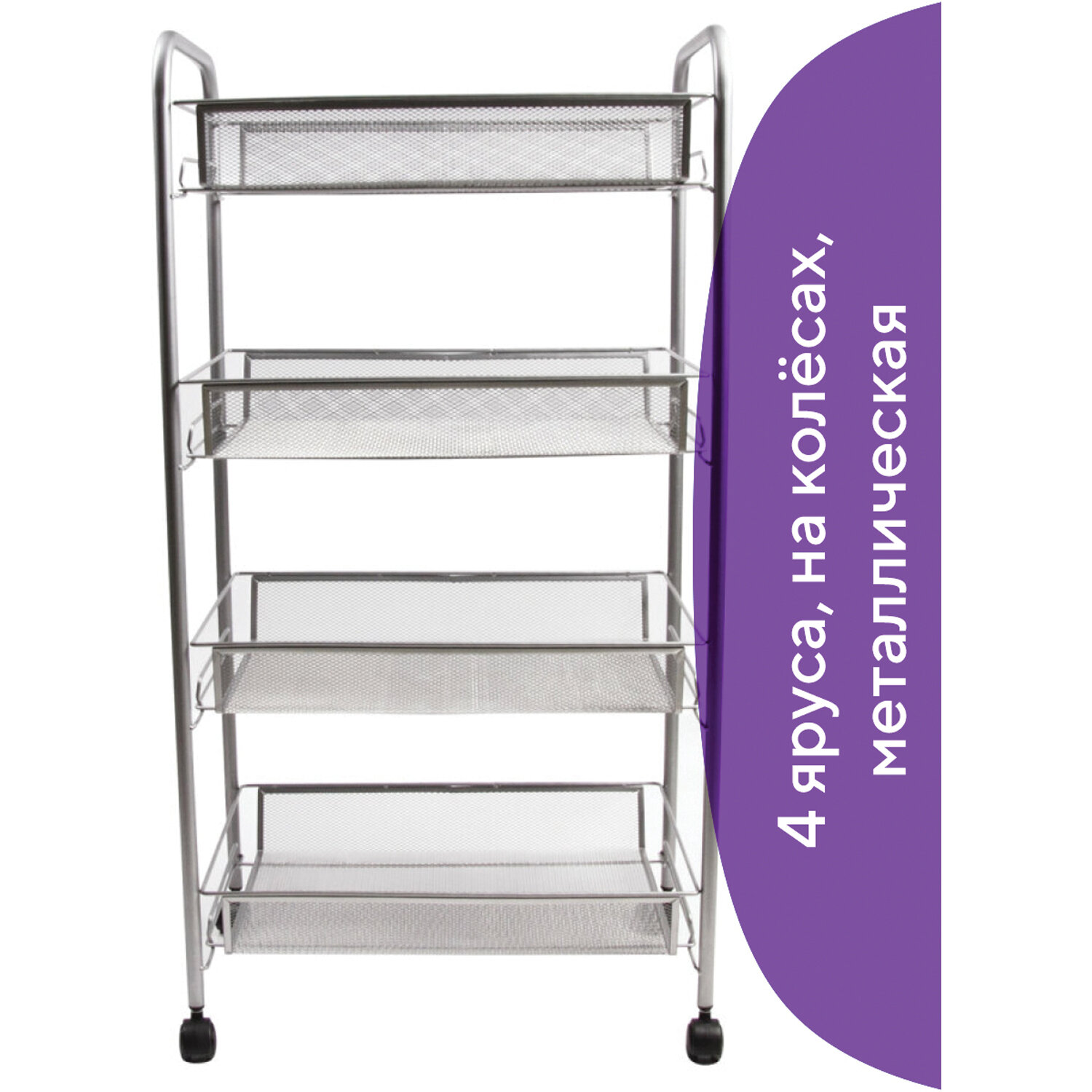 - Этажерка (тележка) BRABIX офисно-бытовая 4 яруса, на колесах, металл, серебристая, 43,5х26х83,5 см, 603754