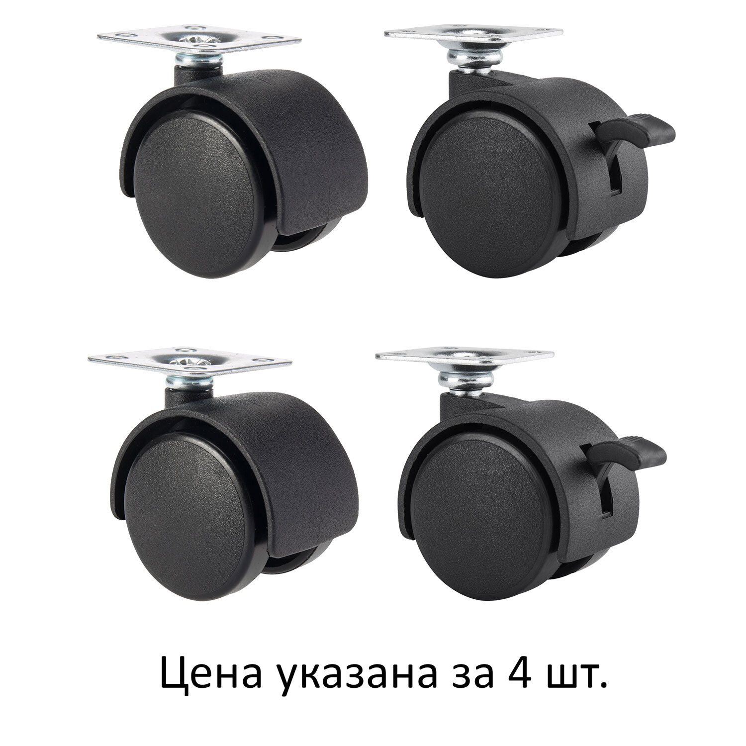 - Колеса (ролики) для мебели, пластиковые d 35 мм, КОМПЛЕКТ 4 шт., черные, в пакете, WBZ, 533090