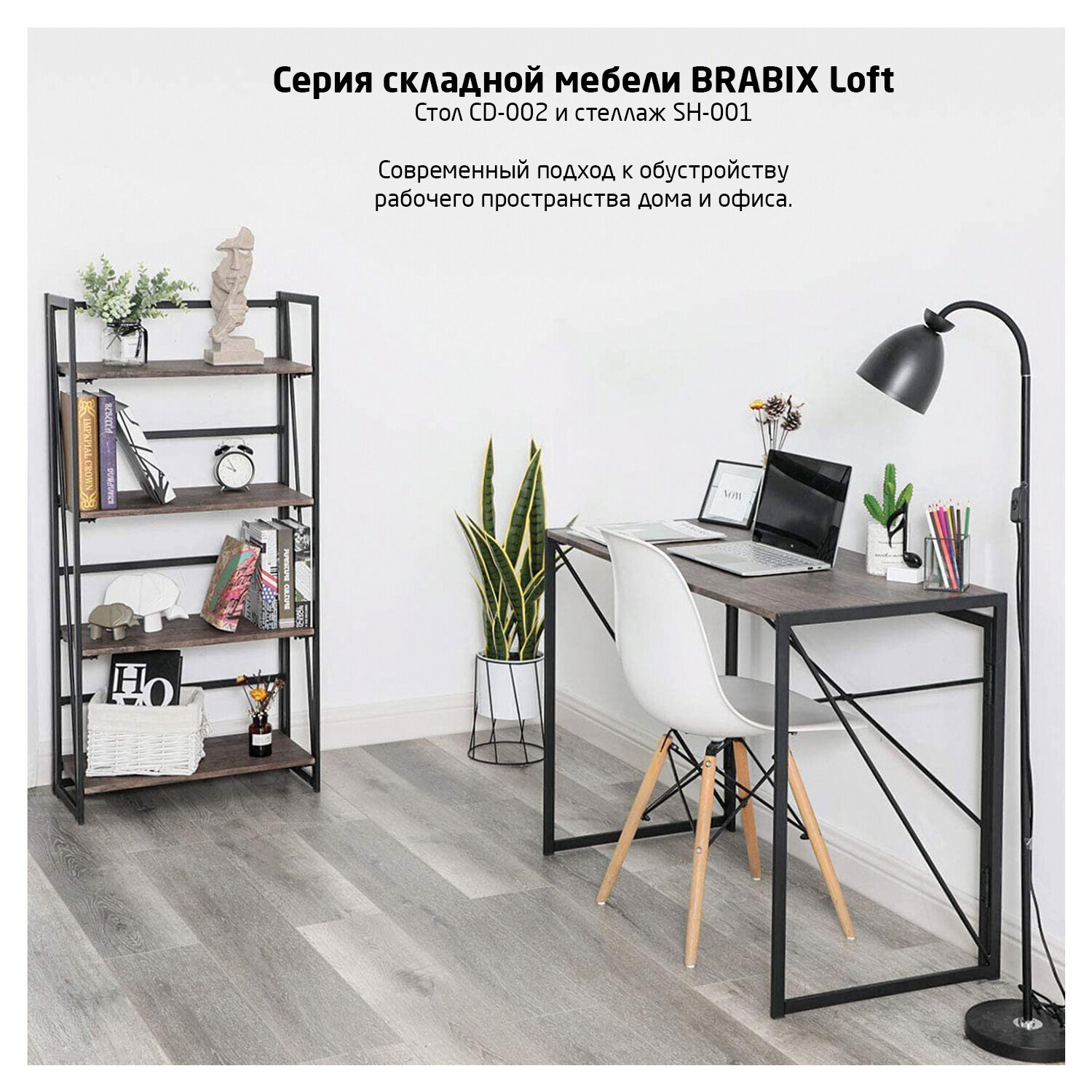 - Стеллаж на металлокаркасе "BRABIX LOFT SH-001", 600х300х1250 мм, складной, цвет морёный дуб, 641228