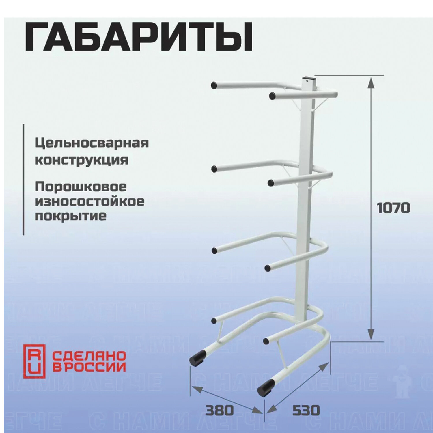 Цельнометаллическая сварная конструкция из стали (6 кг) размером 380х530х1070 мм. Вмещает до 4 бутылей по 19 л (макс. нагрузка – 80 кг). Неразборная система с надежными держателями. Глубина 530 мм позволяет компактно разместить стойку в любом помещении. Производство – Россия.