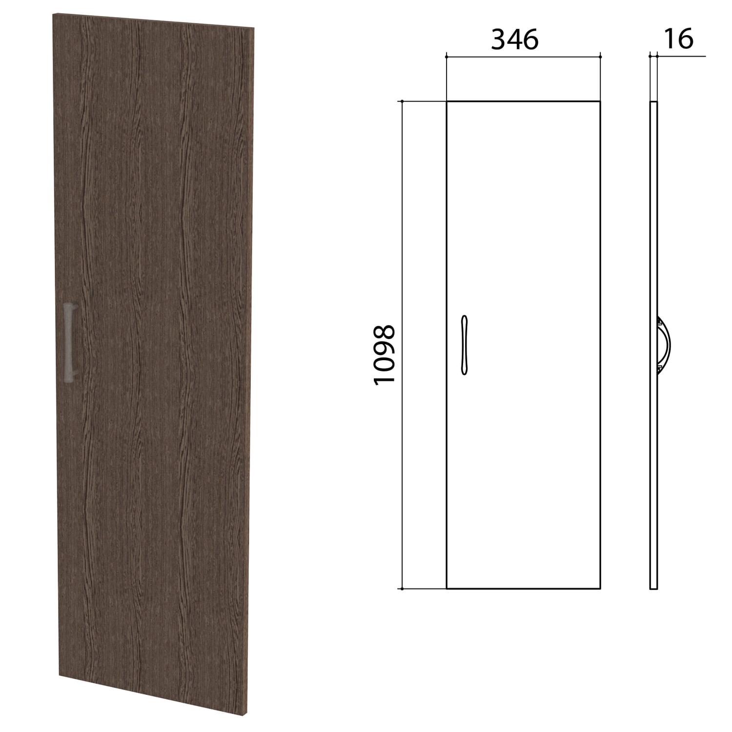 Дверь (фасад) предназначена для навешивания на шкафы (стеллажи) "Канц". Дверь ЛДСП средняя "Канц" 346х16х1098 мм, цвет венге, ДК36.16