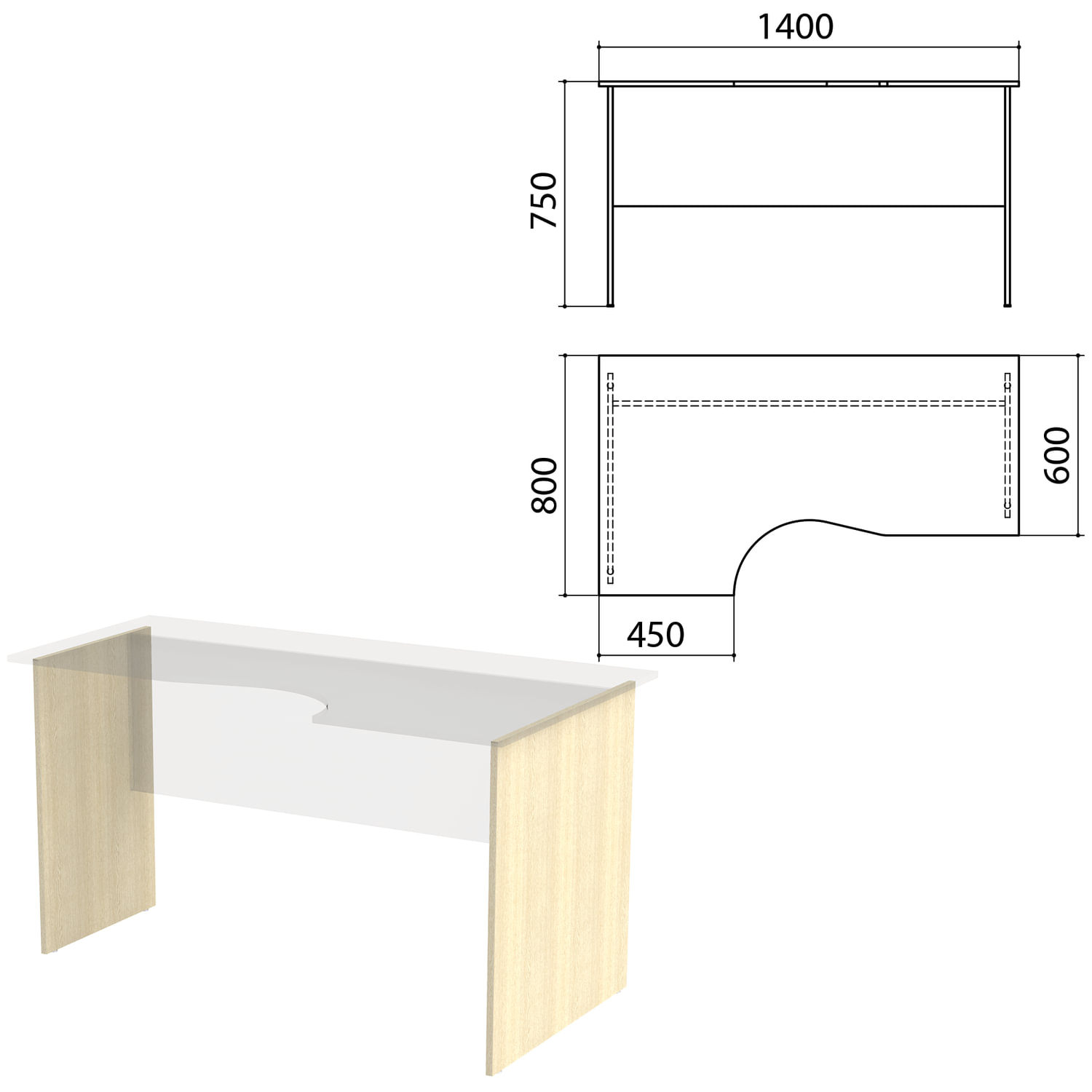 - Опоры к столам эргономичным "Канц" 1400х800х750 мм, левый/правый, цвет дуб молочный, СК30.15.2