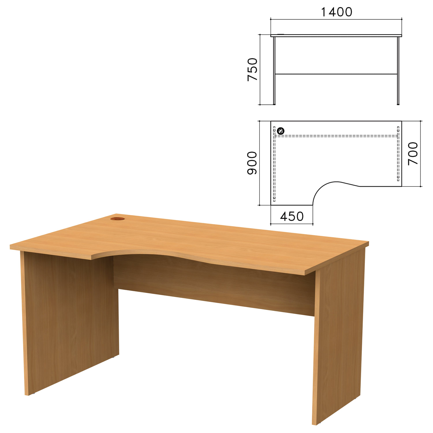 - Стол письменный эргономичный "Монолит", 1400х900х750 мм, левый, цвет бук бавария, СМ5.1