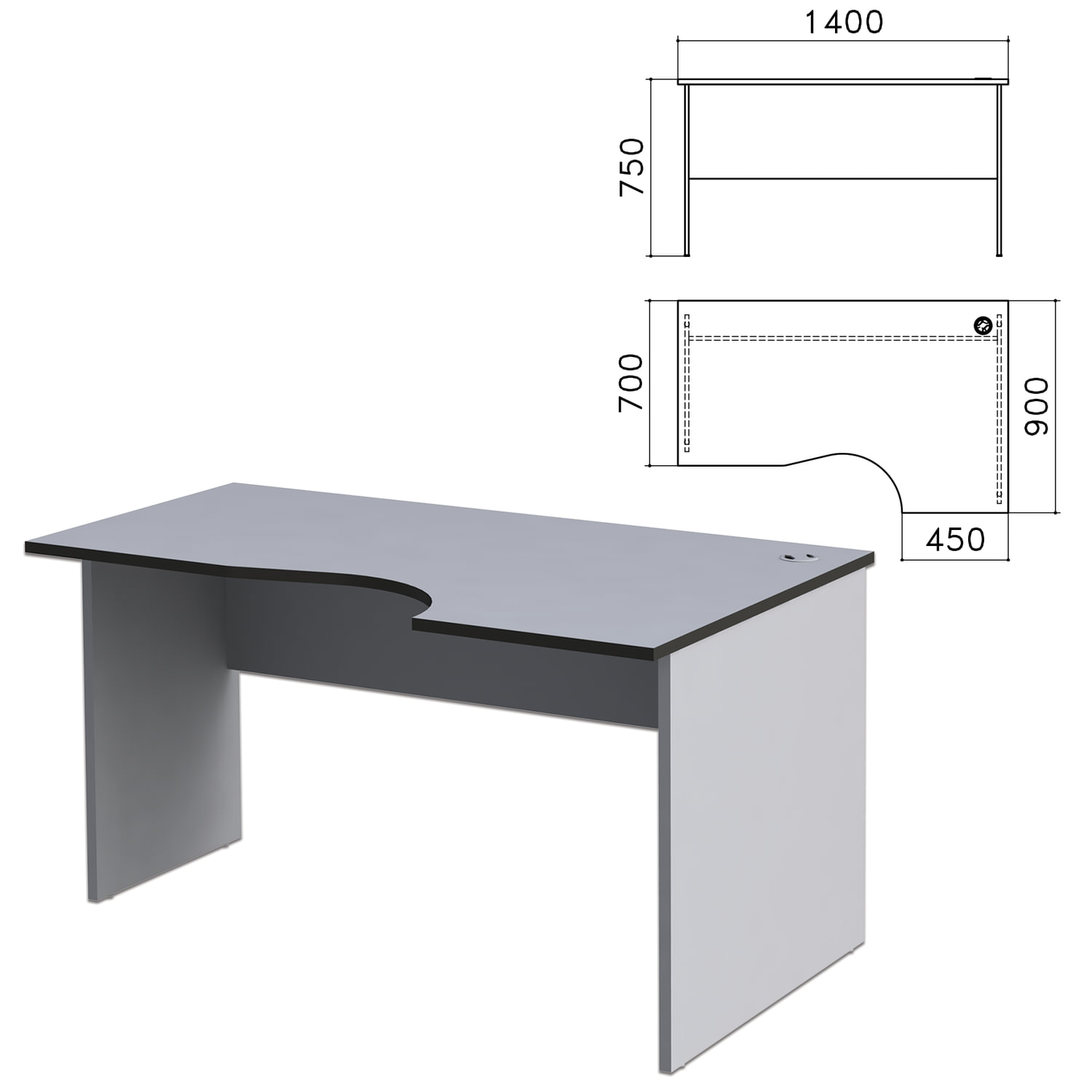- Стол письменный эргономичный "Монолит", 1400х900х750 мм, правый, цвет серый, СМ4.11