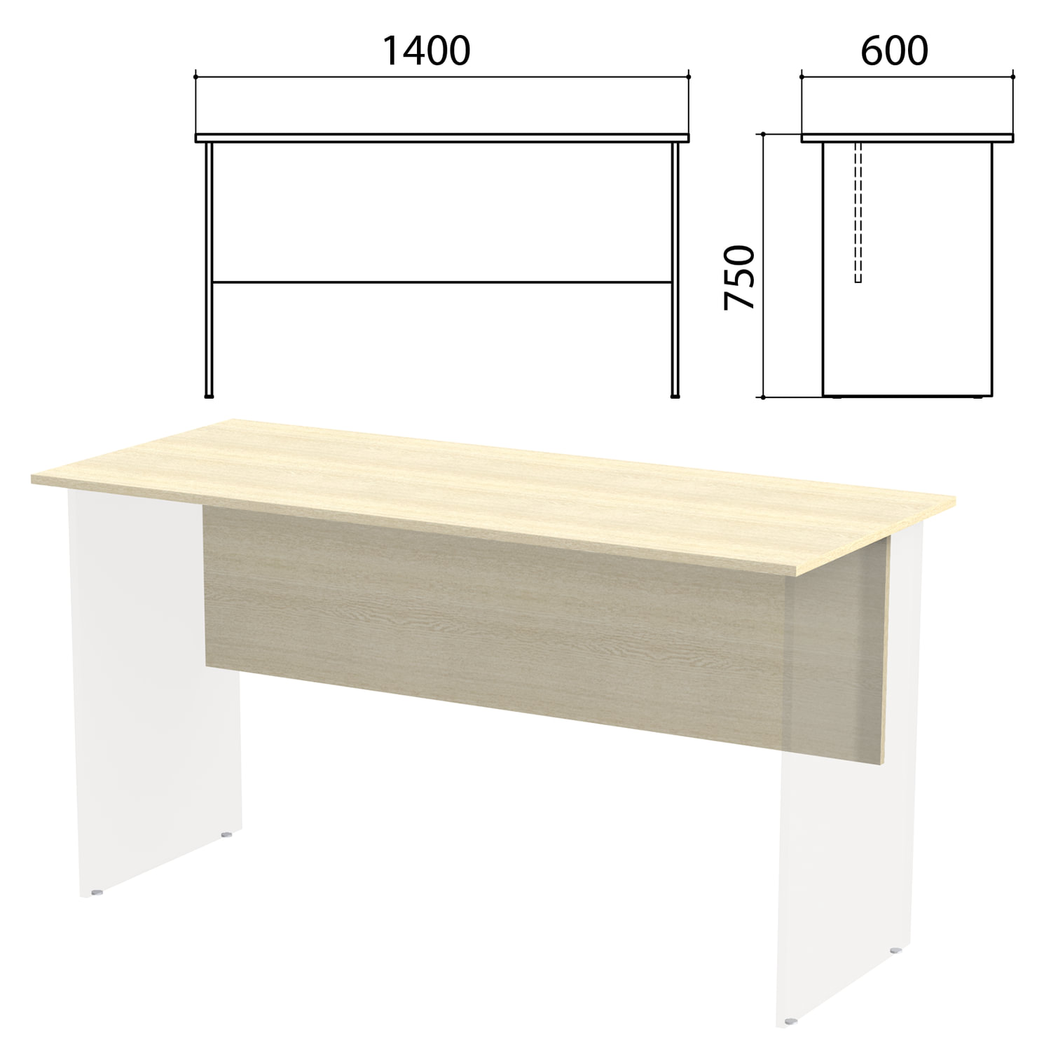 - Столешница, царга стола письменного "Канц" 1400х600х750 мм, цвет дуб молочный, СК21.15.1
