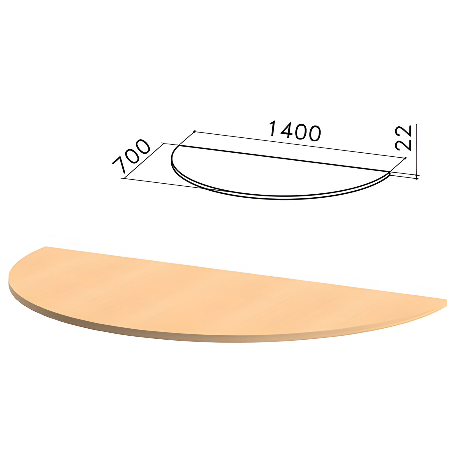 - Стол приставной полукруг "Монолит", 1400х700х750 мм, БЕЗ ОПОР (640137), цвет бук бавария, ПМ35.1