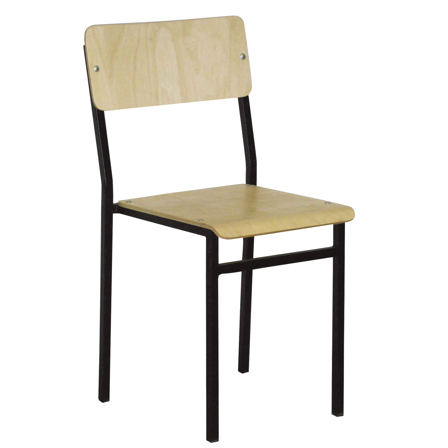 Сиденье и спинка выполнены из формованного березового шпона с учетом требований эргономики, покрыты бесцветным лаком. Каркас изготовлен из труб прямоугольного сечения 20х20 мм и толщиной стенки 1,2 мм, окрашен износостойкой полимерной порошковой краской. Стул ученический нерегулируемый, 380х420х840 мм, рост 6 (от 170 см), черный каркас, СШ2/1