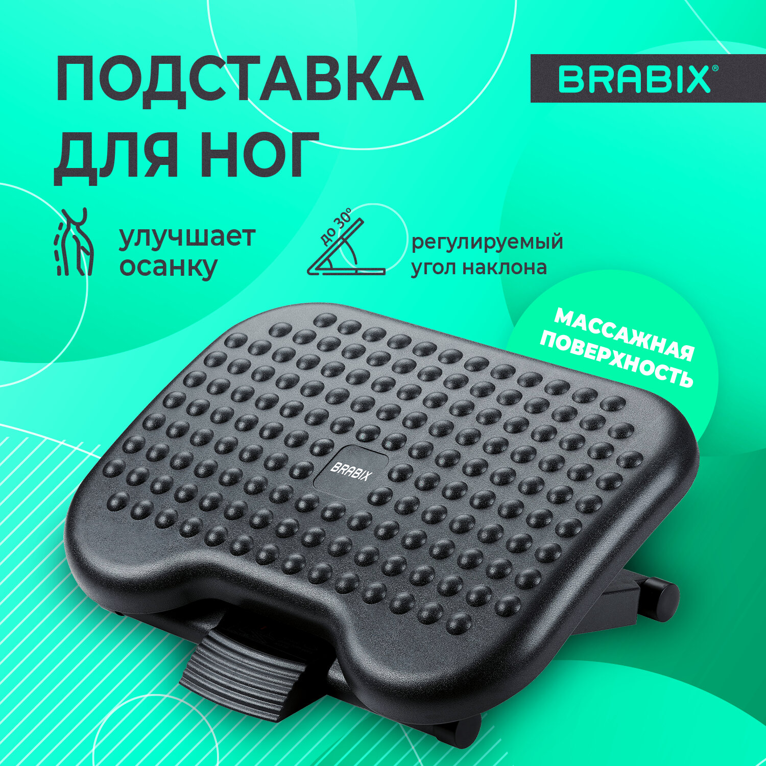 - Подставка для ног BRABIX "Ultra 1" 46х34 см, регулировка высоты и угла наклона, 533036