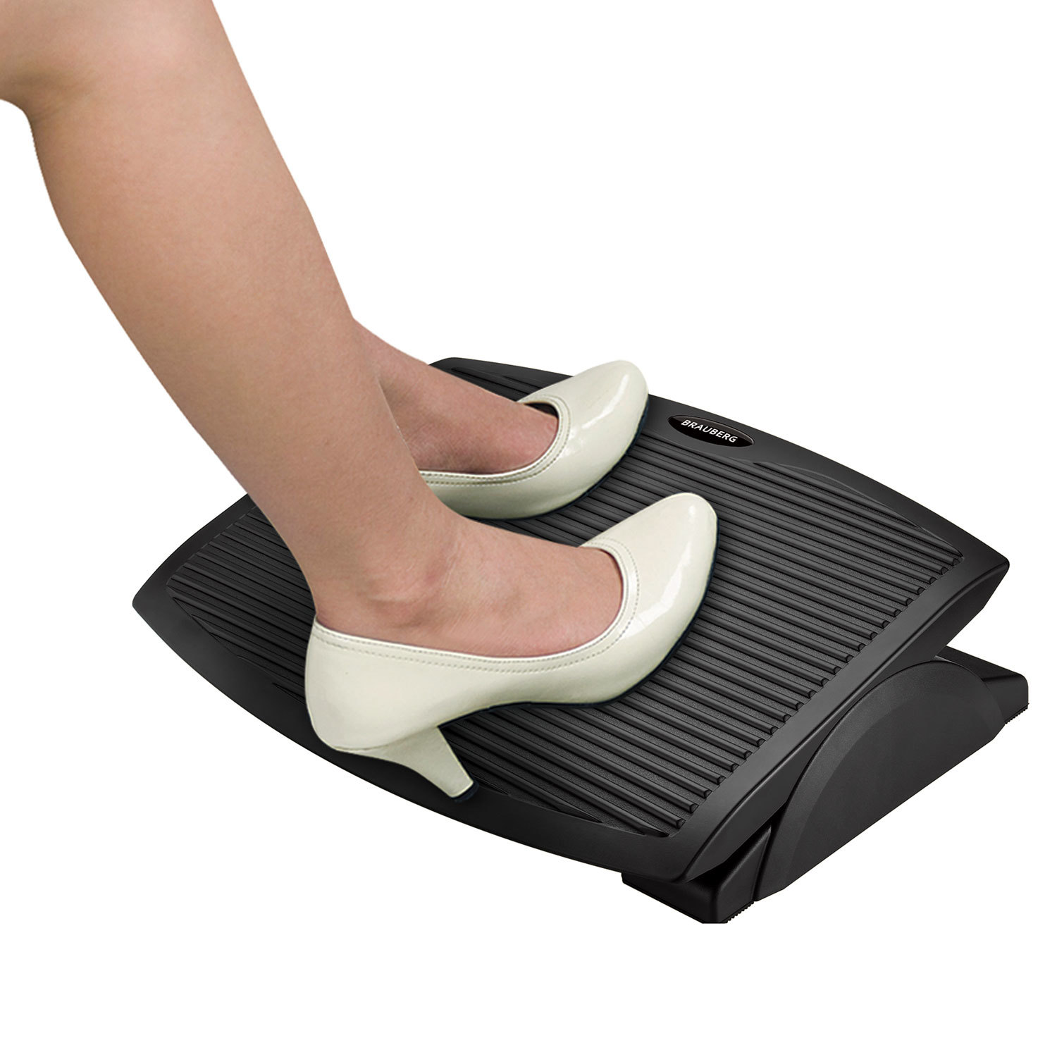 Представляет собой устойчивую и прочную пластиковую конструкцию с размером платформы 45х35 см. Имеет регулируемый угол наклона от 0 до 20°. Основание подставки снабжено покрытием, препятствующим скольжению. Подставка для ног BRAUBERG, офисная, 45х35 см, черная, 530106
