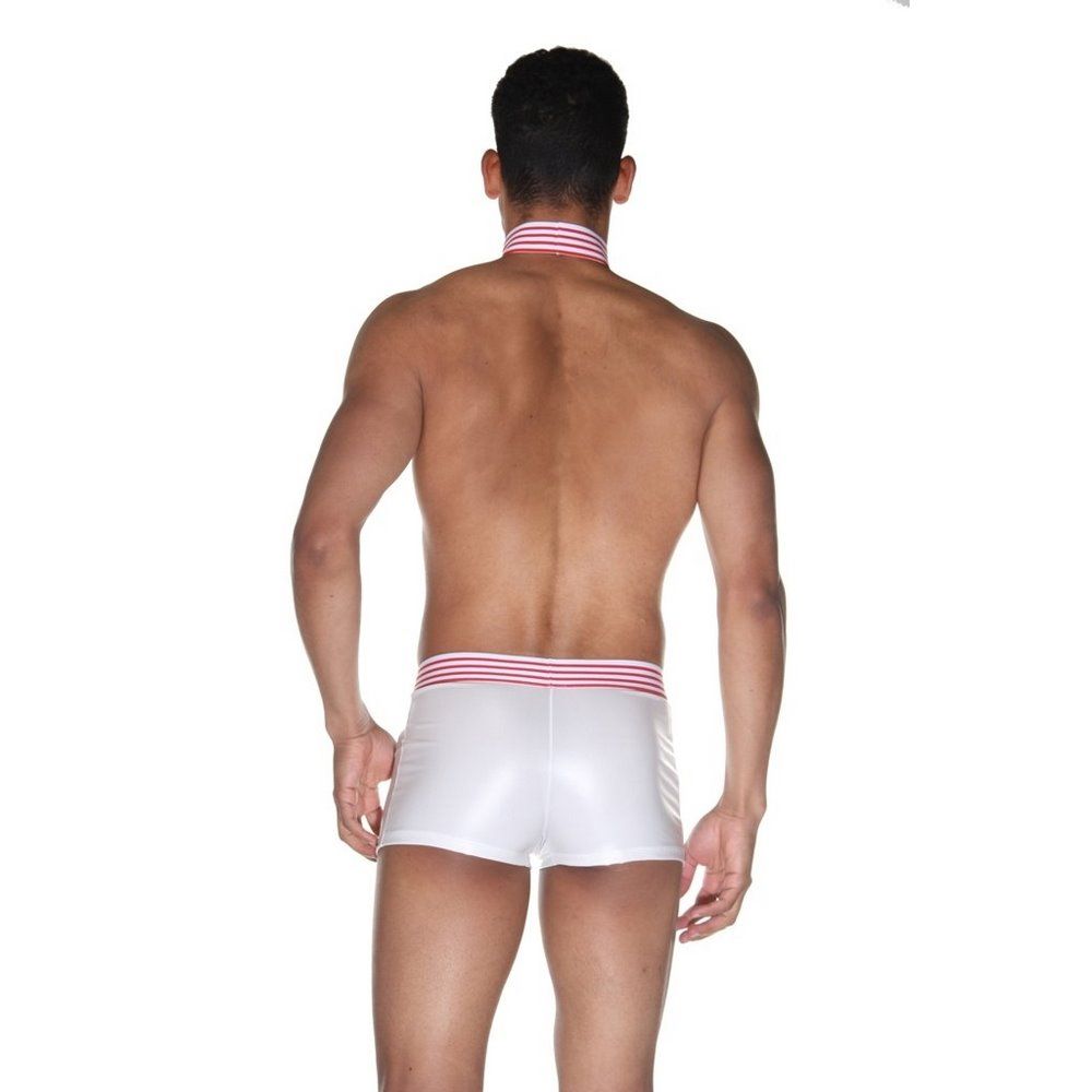 Мужской костюм «Доктор». Состоит из белых трусов-боксеров на широкой резинке в красную полоску и галстука. Ткань трусов гладкая, блестящая и эластичная. В комплекте: трусы, галстук. Мужской костюм «Доктор»