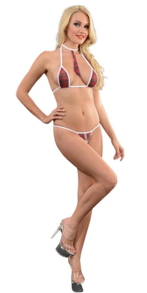 Женский клетчатый костюм ученицы. Состоит из 3 предметов: лифа, стрингов и галстука. Все три предмета с белой оторочкой. В комплекте: лиф, трусики-стринги, галстук. Женский клетчатый костюм ученицы