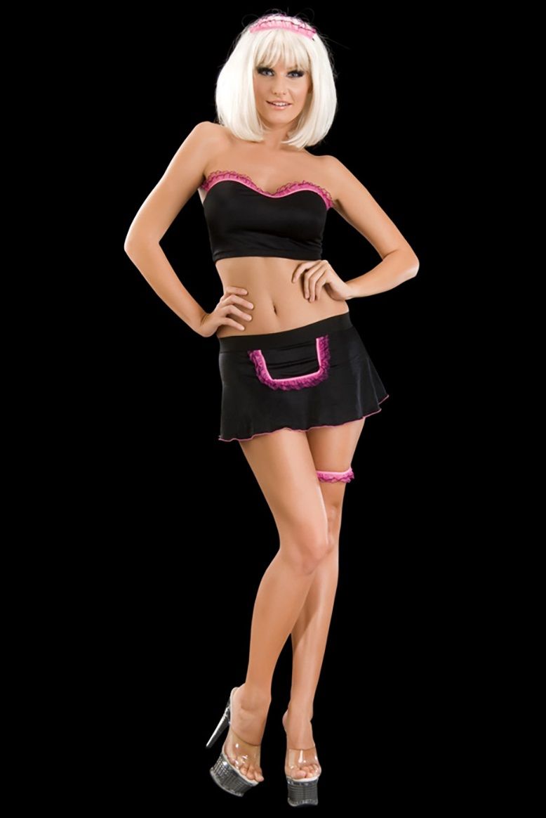 Женский костюм «Официантка». Состоит из 3 предметов: топа, юбки, ободка на голову. В комплекте: топ, юбка, ободок на голову. Подвязка не входит в комплект! Женский костюм «Официантка»