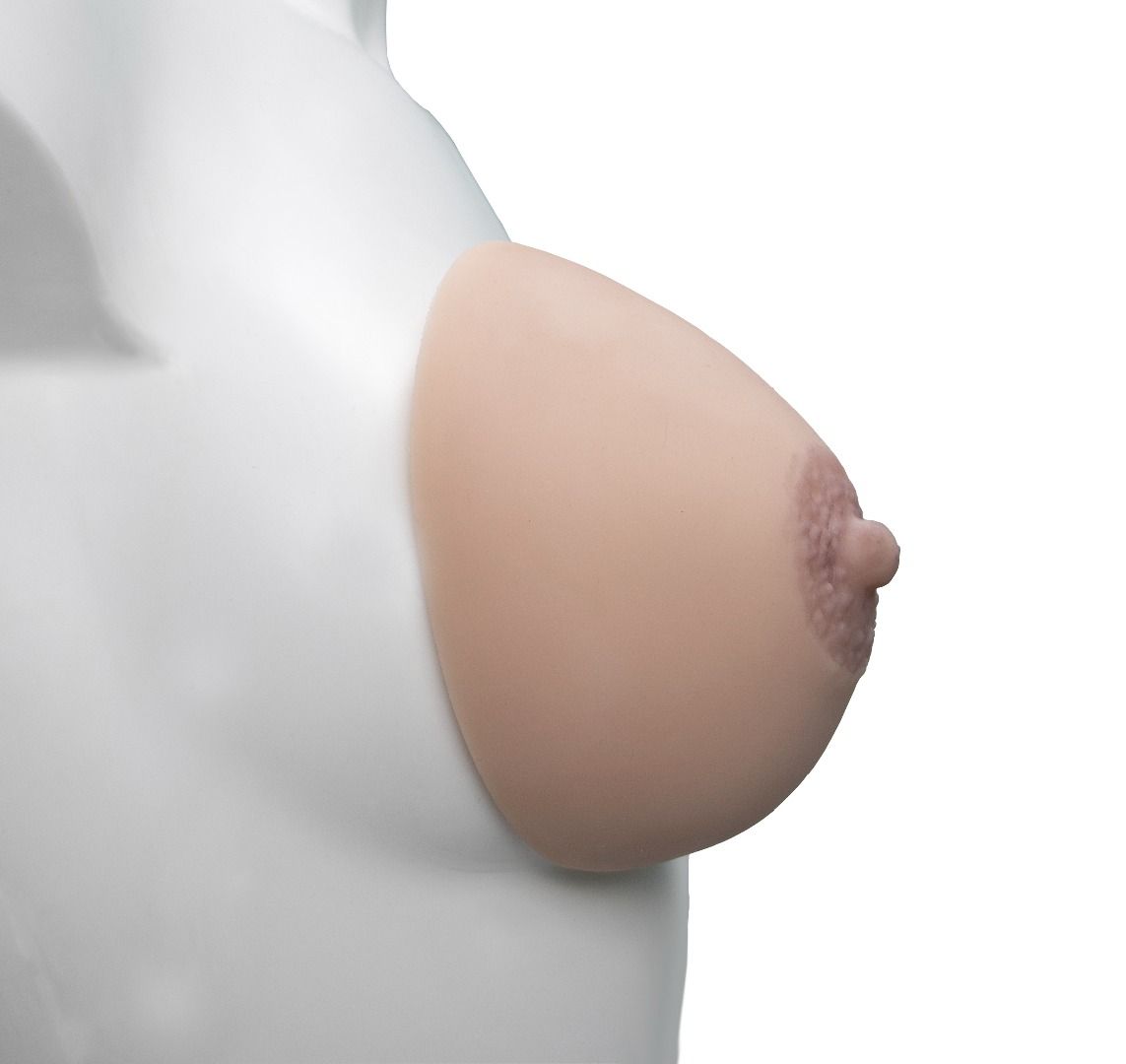 Большой протез молочной железы реалистичен и по форме, и на ощупь. Выполненный из неоскин, он упруг и под бельём так похож на настоящую грудь. Протез может использоваться мужчинами для ролевых игр, женщинами – для придания пышности бюсту или для косметических целей (после мастэктомии). В качестве наполнителя-пластификатора используется медицинское вазелиновое масло. Соответствует чашечкам бюстгальтера С-D (третий размер). Большой протез молочной железы - 1 шт.