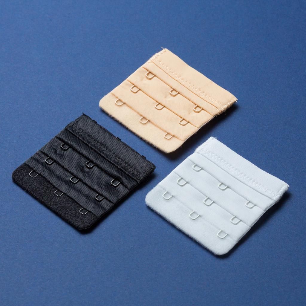 Набор из 3 разноцветных удлинителей для бюстгальтера шириной в 3 крючка: белого, черного и телесного цвета. Набор из 3 разноцветных удлинителей для бюстгальтера шириной в 3 крючка