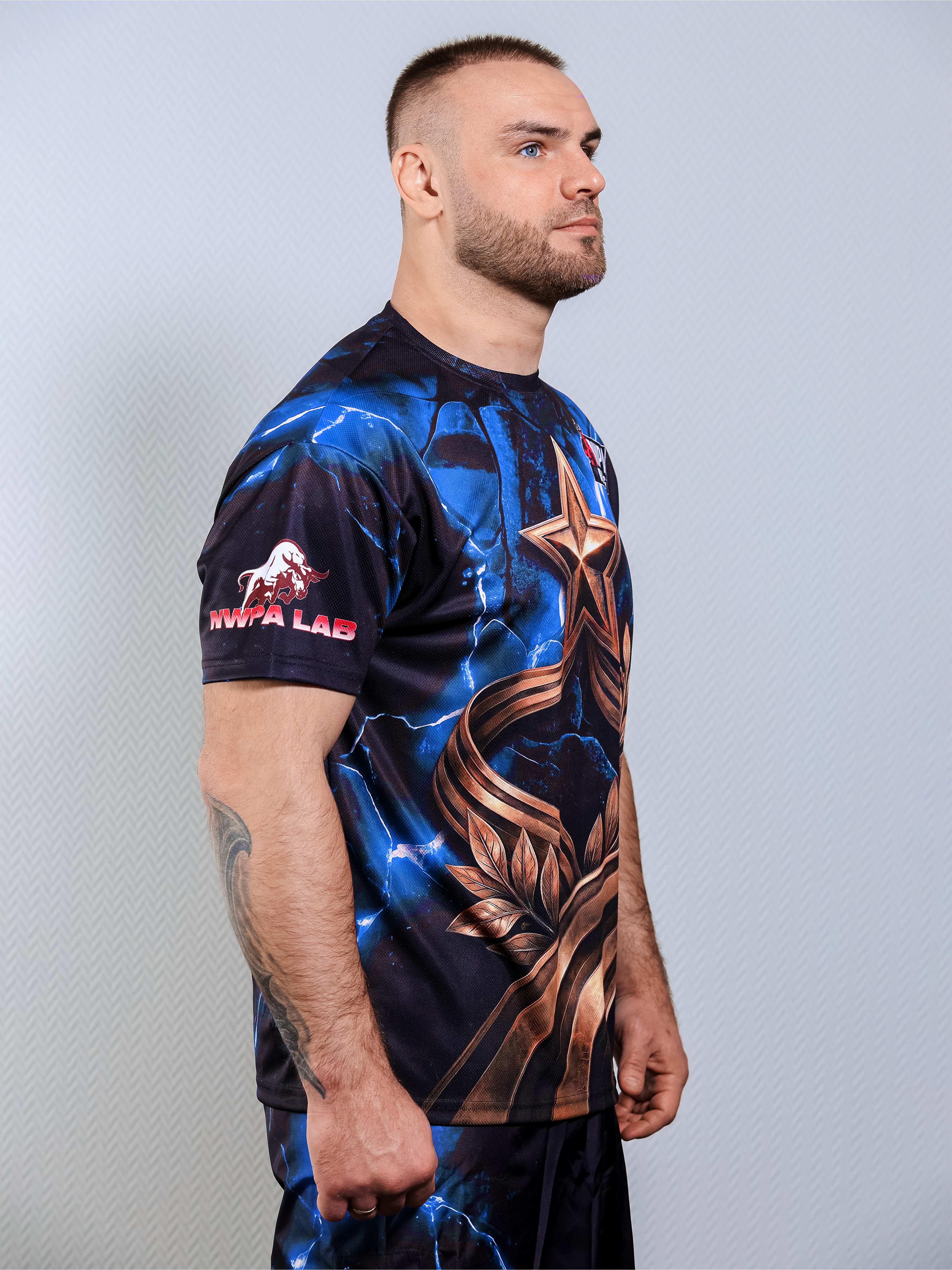 Футболка NWPA FIGHTING "Овер" выполнена из износостойкой высокотехнологичной синтетической ткани. Свойства материала и метод изготовления обеспечивают комфорт при тренировках и активном отдыхе. Принт "X" разработан для десятого турнира организации. Уникальный дизайн. Удобный силуэт не сковывающий движений. NWPA Футболка Овер Оборона Синий F01 S