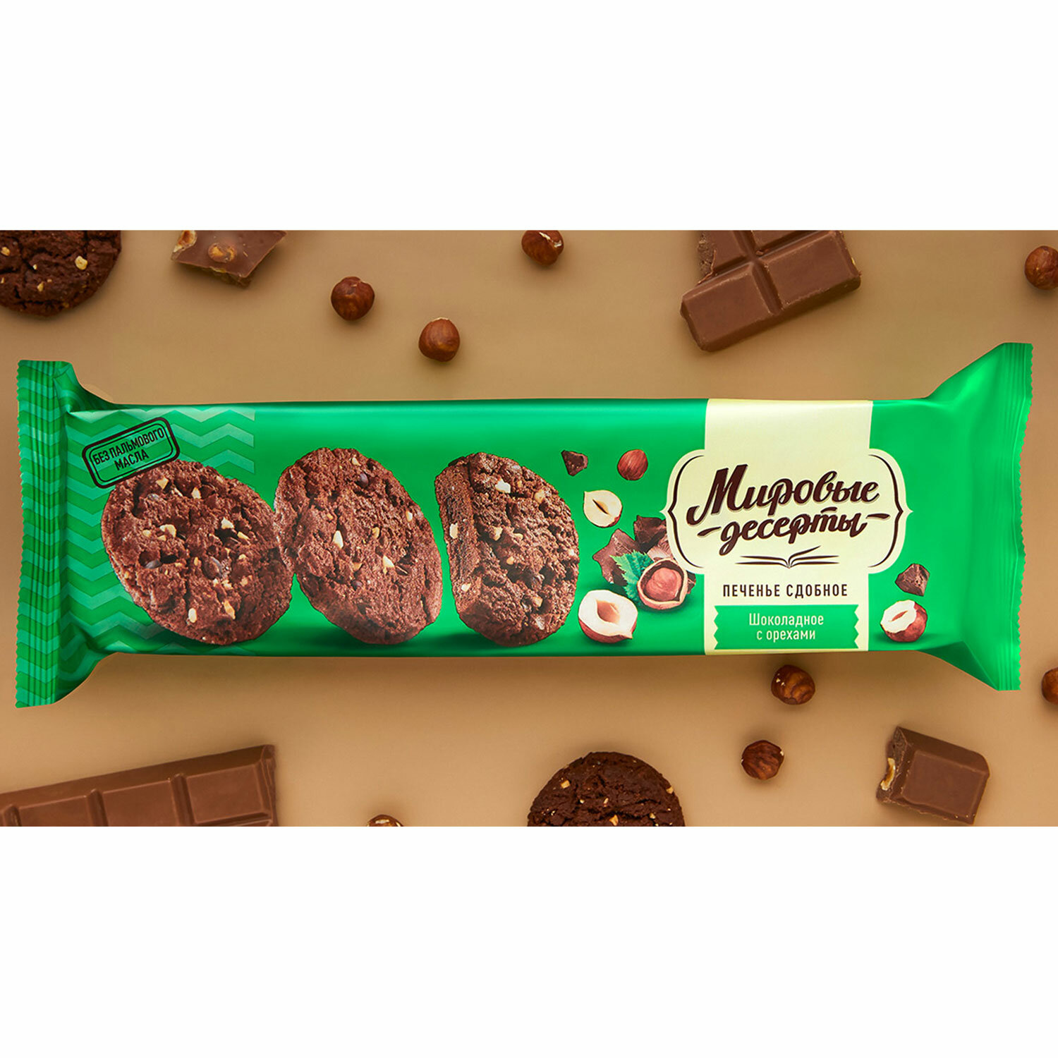 Содержит глютен пшеницы, молокопродукты, арахис, фундук, продукты переработки сои. Может содержать следы яиц, глютена ячменя, кунжута. Печенье БРЯНКОНФИ "Шоколадное с орехом", сдобное, 170 г, 3043810